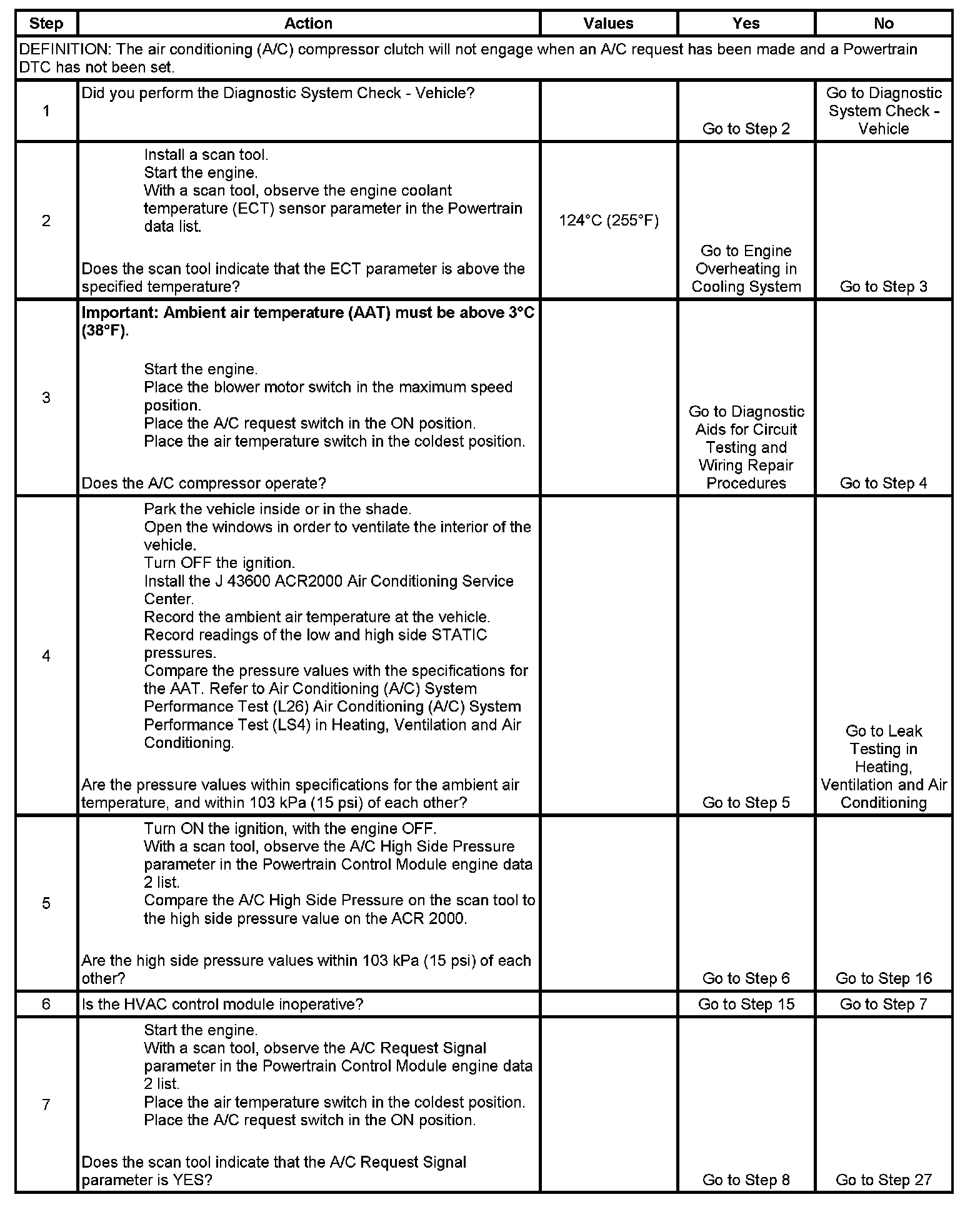 2. The air conditioning (A/C) compressor relay output is disabled if engine coolant temperature is above 124°C (255°F).
