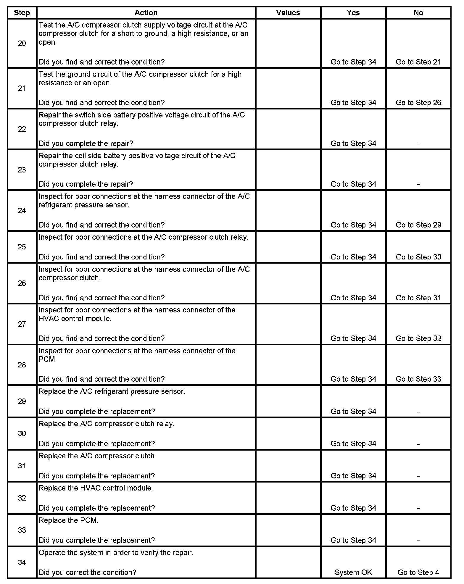 6. The HVAC control module is inoperative when the module does not respond to any operator control requests to enable the A/C compressor. The blower motor may still operate independent of the A/C controls.