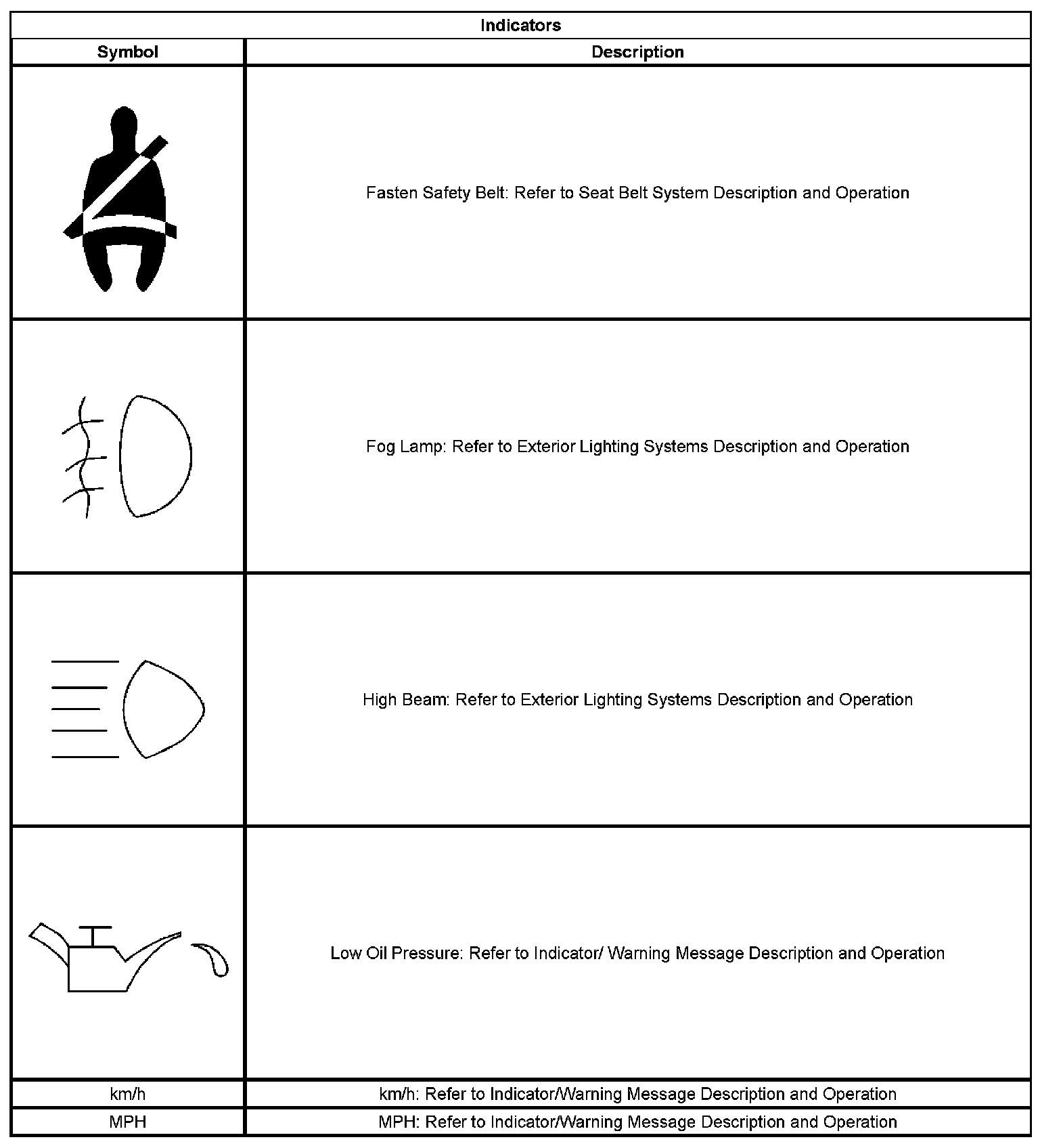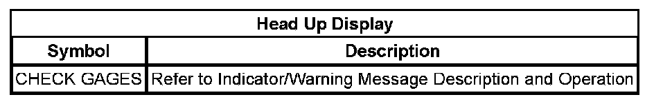 The head up display (HUD) illuminates the CHECK GAGES indicator. The HUD receives a message requesting illumination from the instrument panel cluster (IPC). The HUD illuminates the CHECK GAGES indicator when the IPC illuminates any of the following indicators: