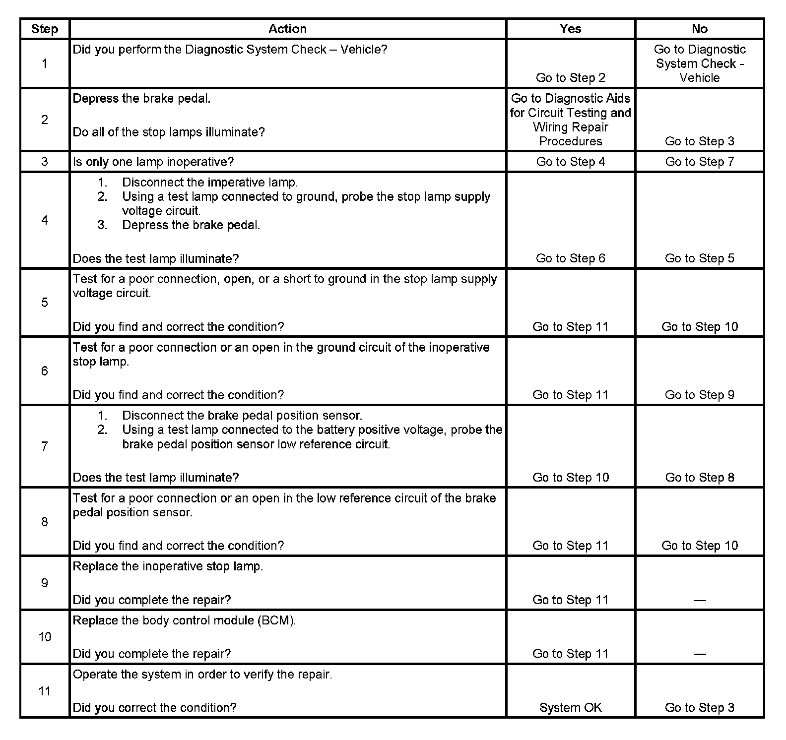Stop Lamps Inoperative