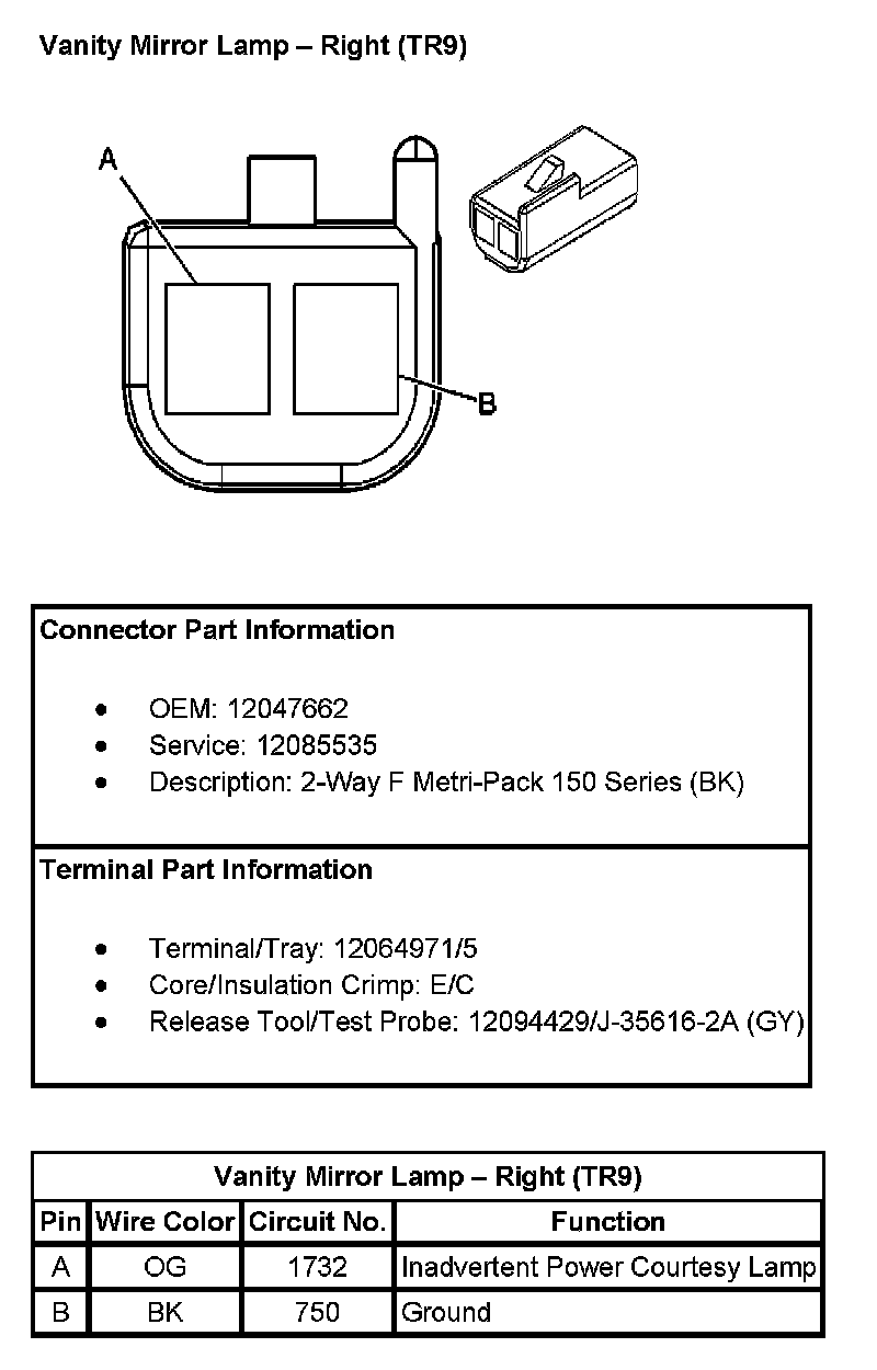 Vanity Mirror Lamp - Right (With RPO Code TR9):