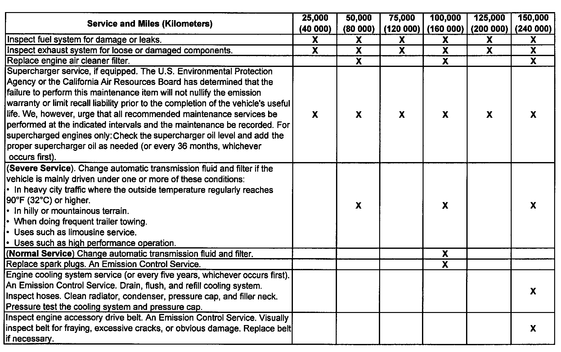 service (I or II) after the indicated miles (kilometers) shown for each item.