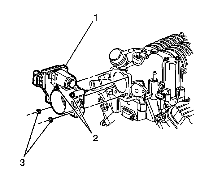 5. Remove the throttle body nuts (3) and the bolts (2).