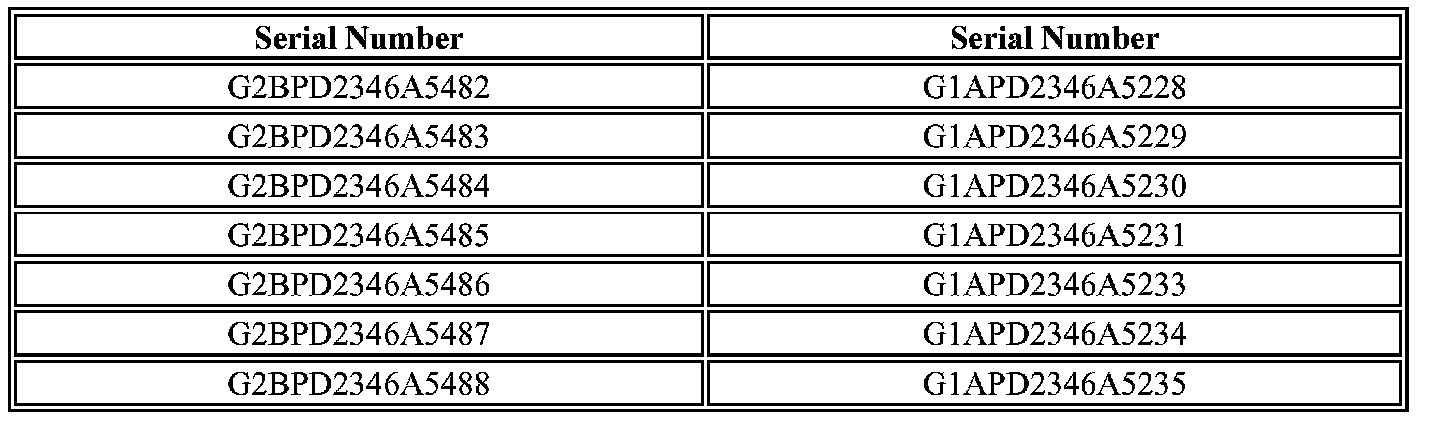 ^ If the serial number on the fuel tank is not listed, no further action is required.