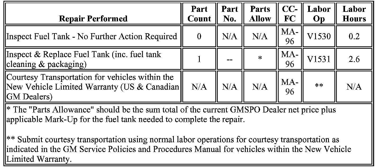 ^ If the serial number on the fuel tank is listed, the fuel tank requires replacement. Refer to Fuel Tank Replacement in SI. Do not discard the fuel tank. Refer to the section titled, Fuel Tank Cleaning and Packaging Information shown below.