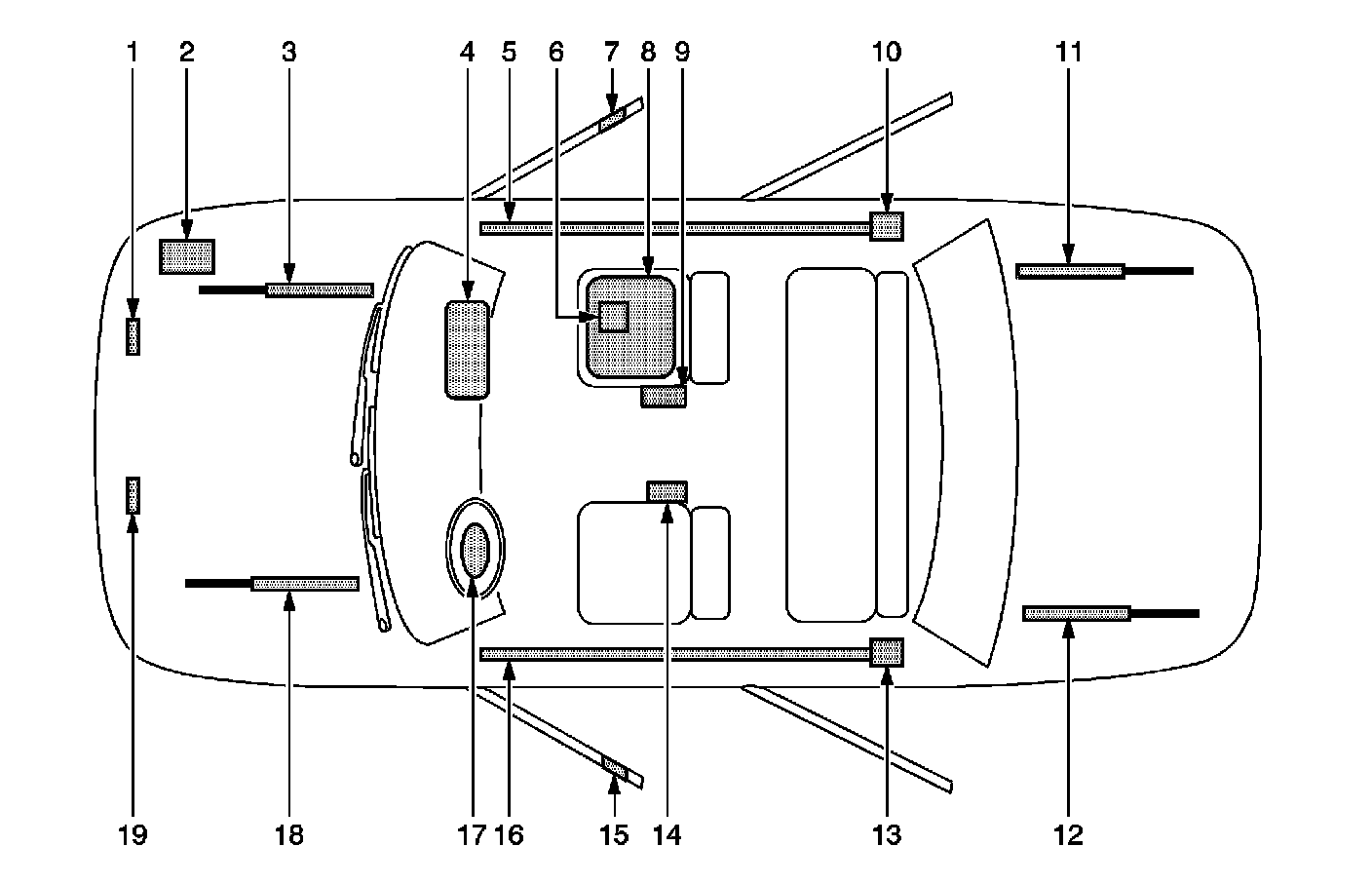 7 - Side Impact Sensor (SIS)-Located on passenger door under door trim panel