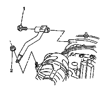 2. Remove the generator rear brace nut (2).