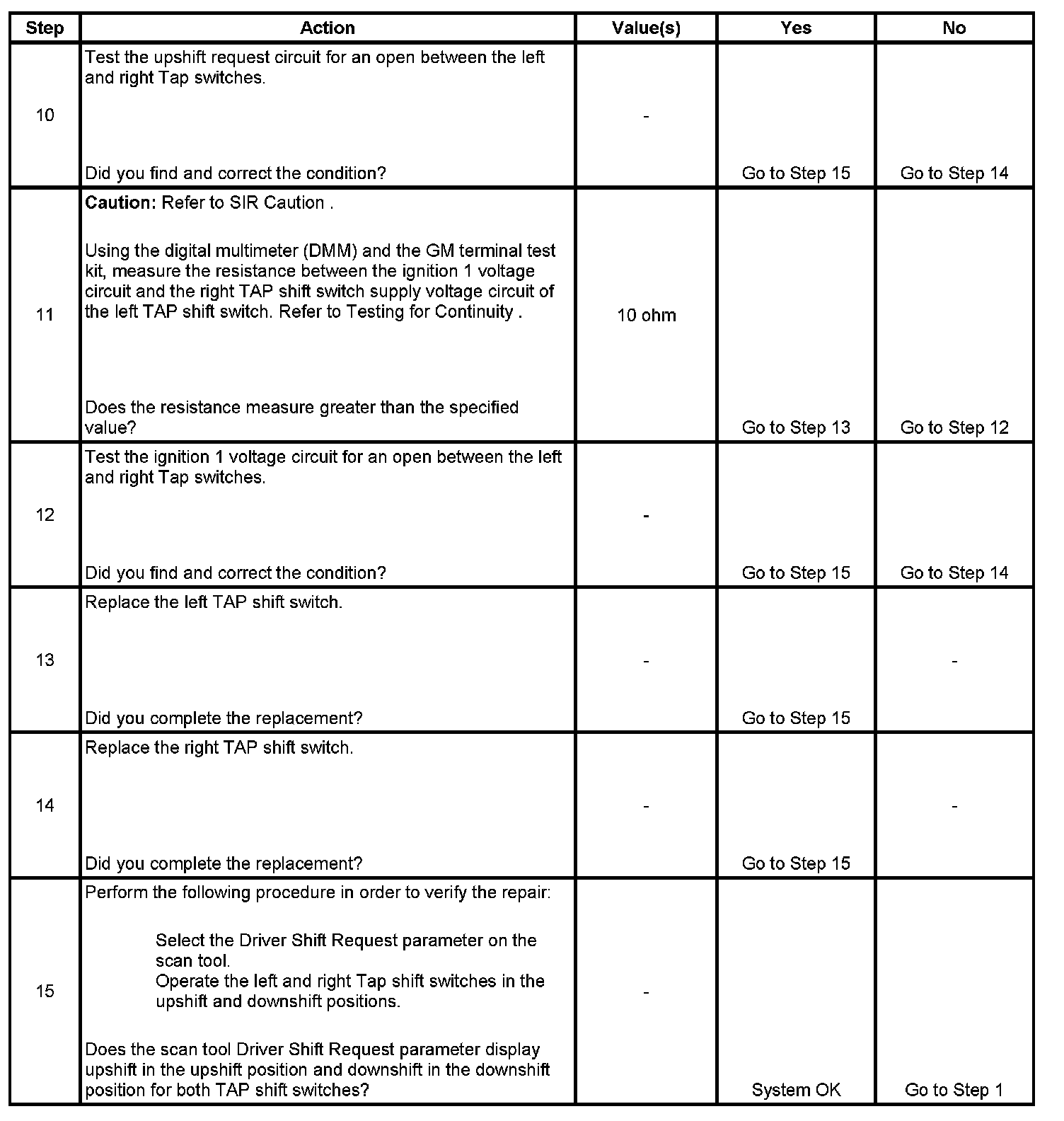 TAP Shift Circuit Performance (3.8L)