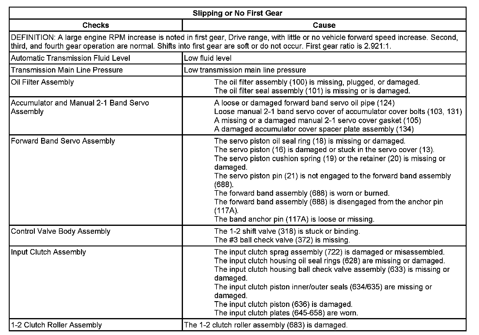 Slipping Or No First Gear: