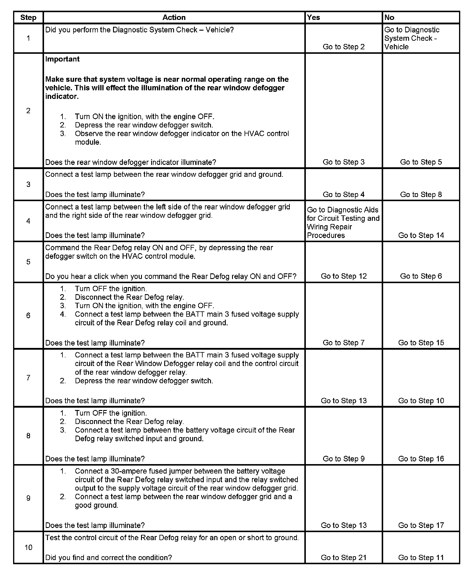 5. Listen for an audible click when the Rear Defog relay operates. Command both the ON and OFF states of the Rear Defog relay. Repeat the commands as necessary.