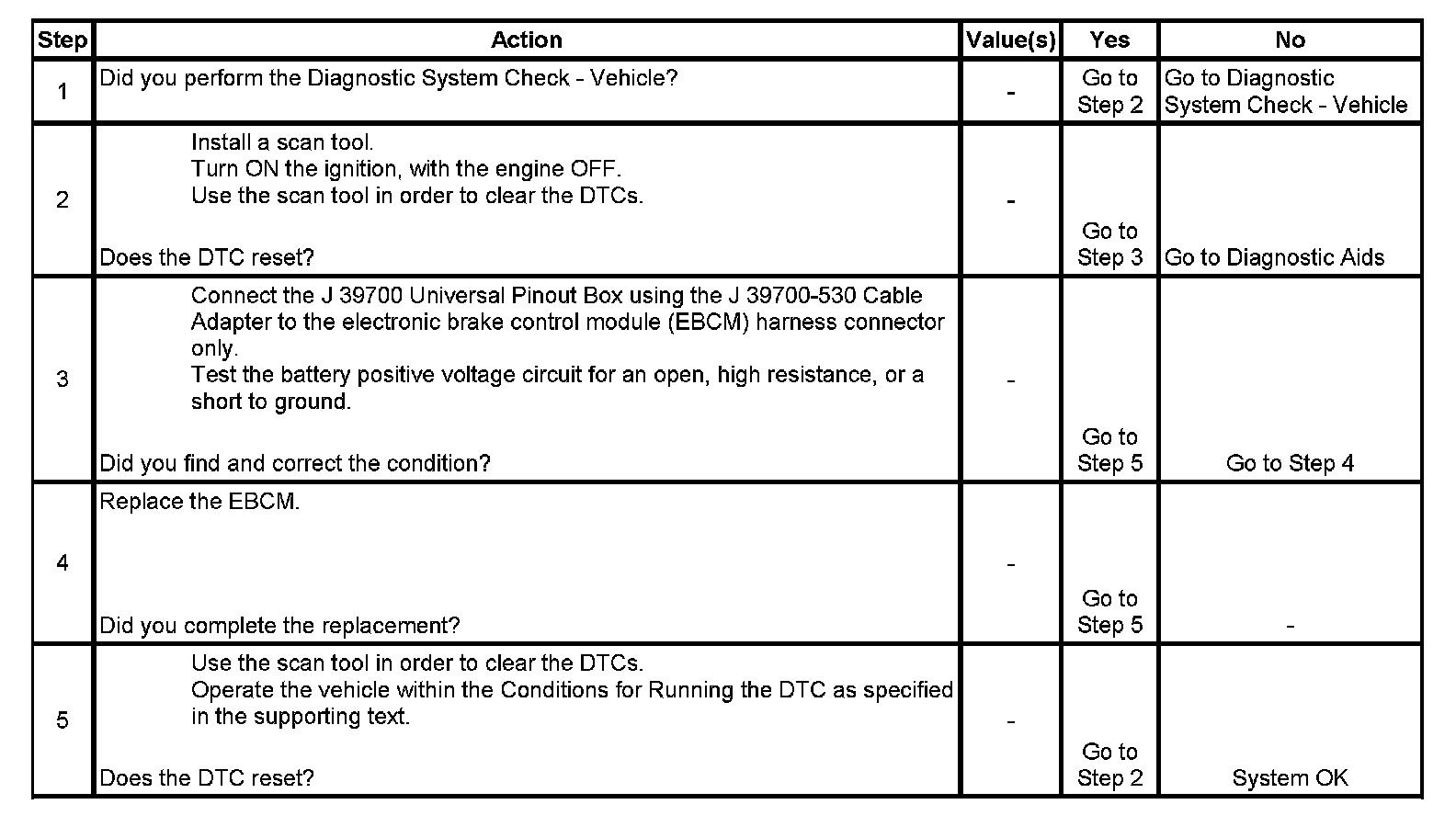 * The electronic brake control module (EBCM) automatically clears the history DTC when a current DTC is not detected in 100 consecutive drive cycles.