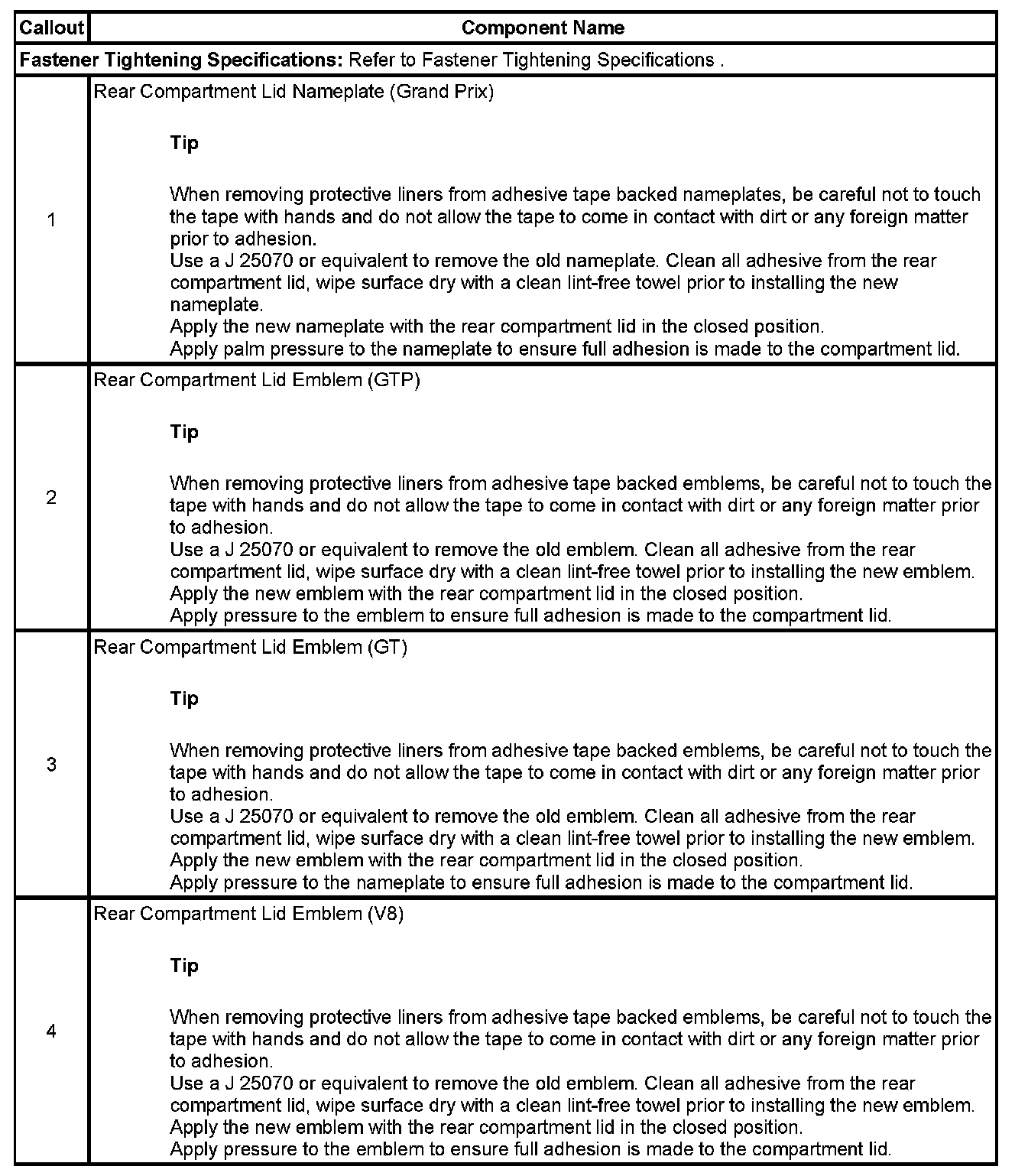 Rear Compartment Lid Emblem/Nameplate Replacement