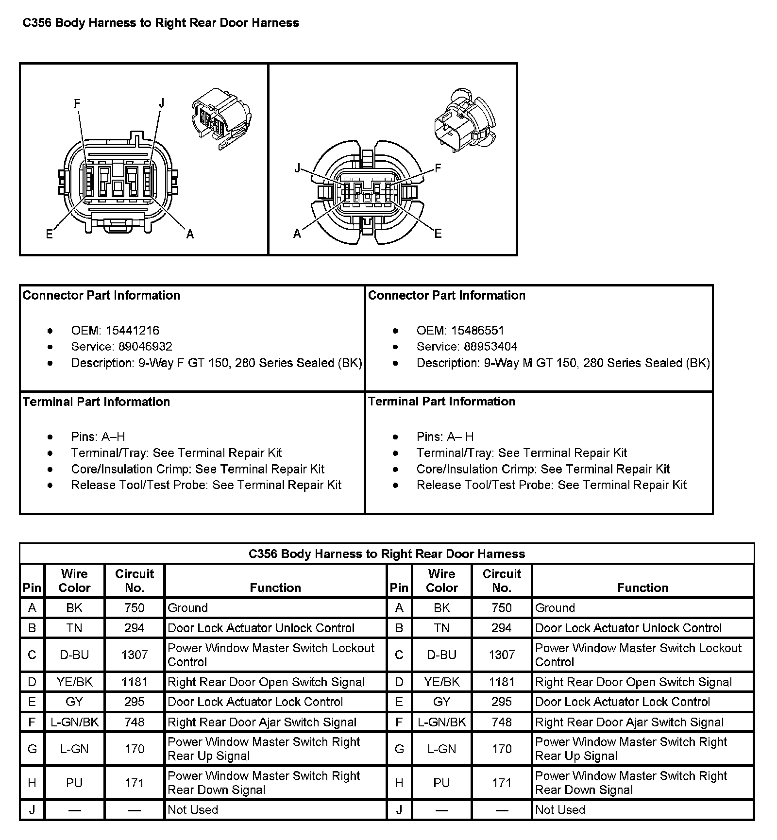 C356 Body Harness To Right Rear Door Harness: