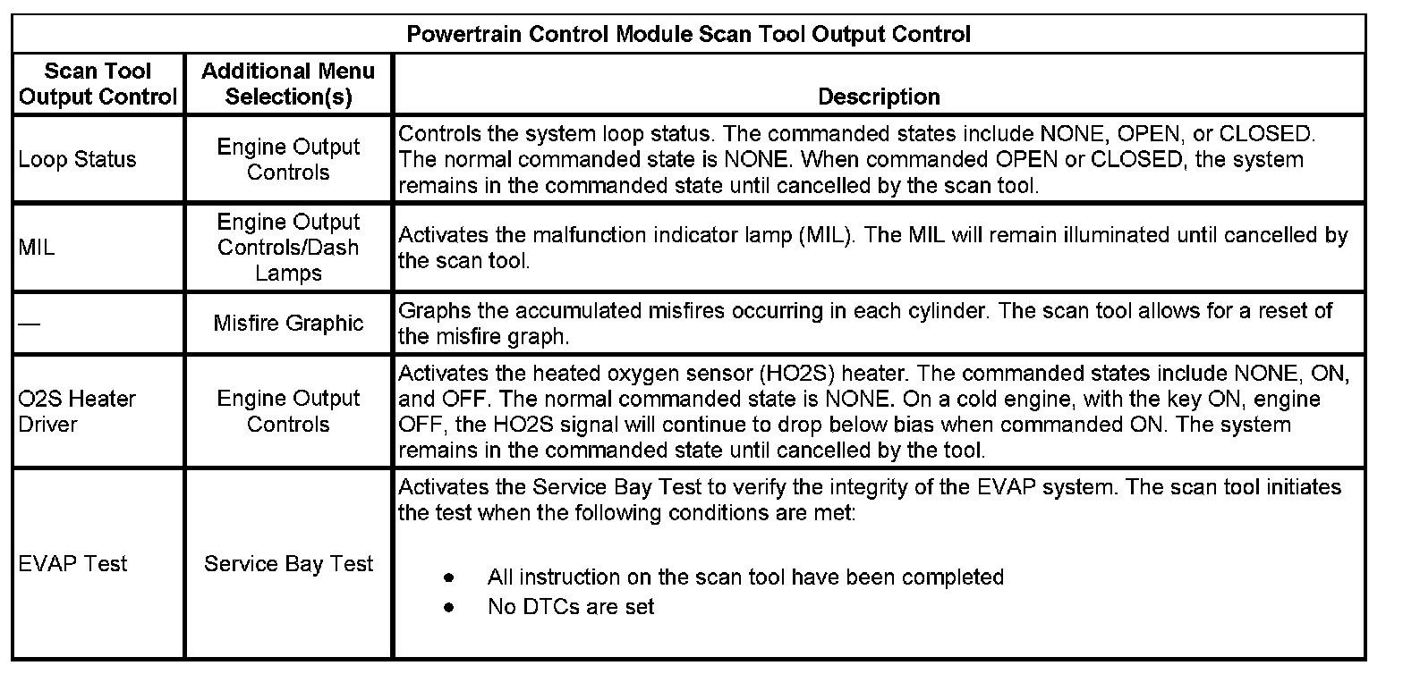 Scan Tool Output Controls