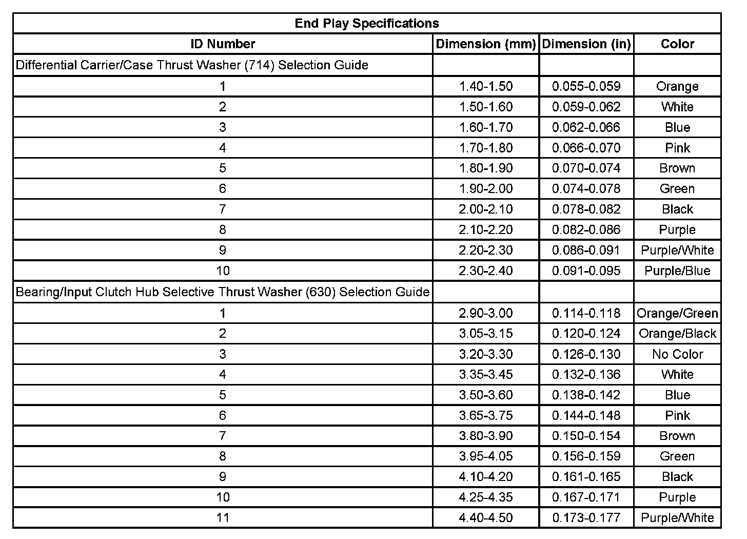 End Play Specifications:
