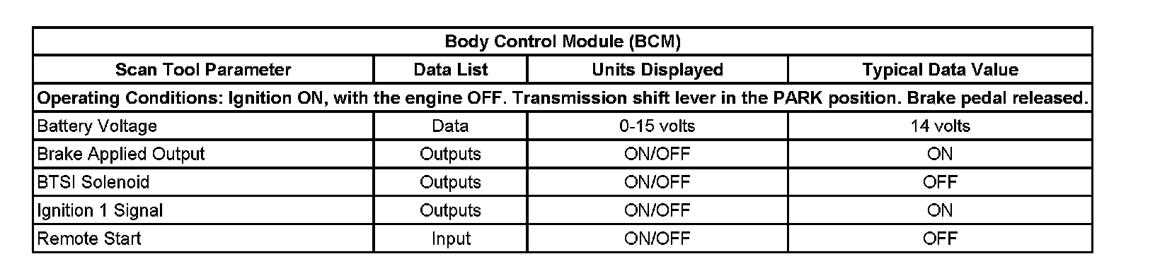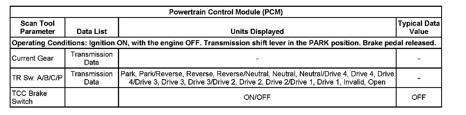 Scan Tool Data List