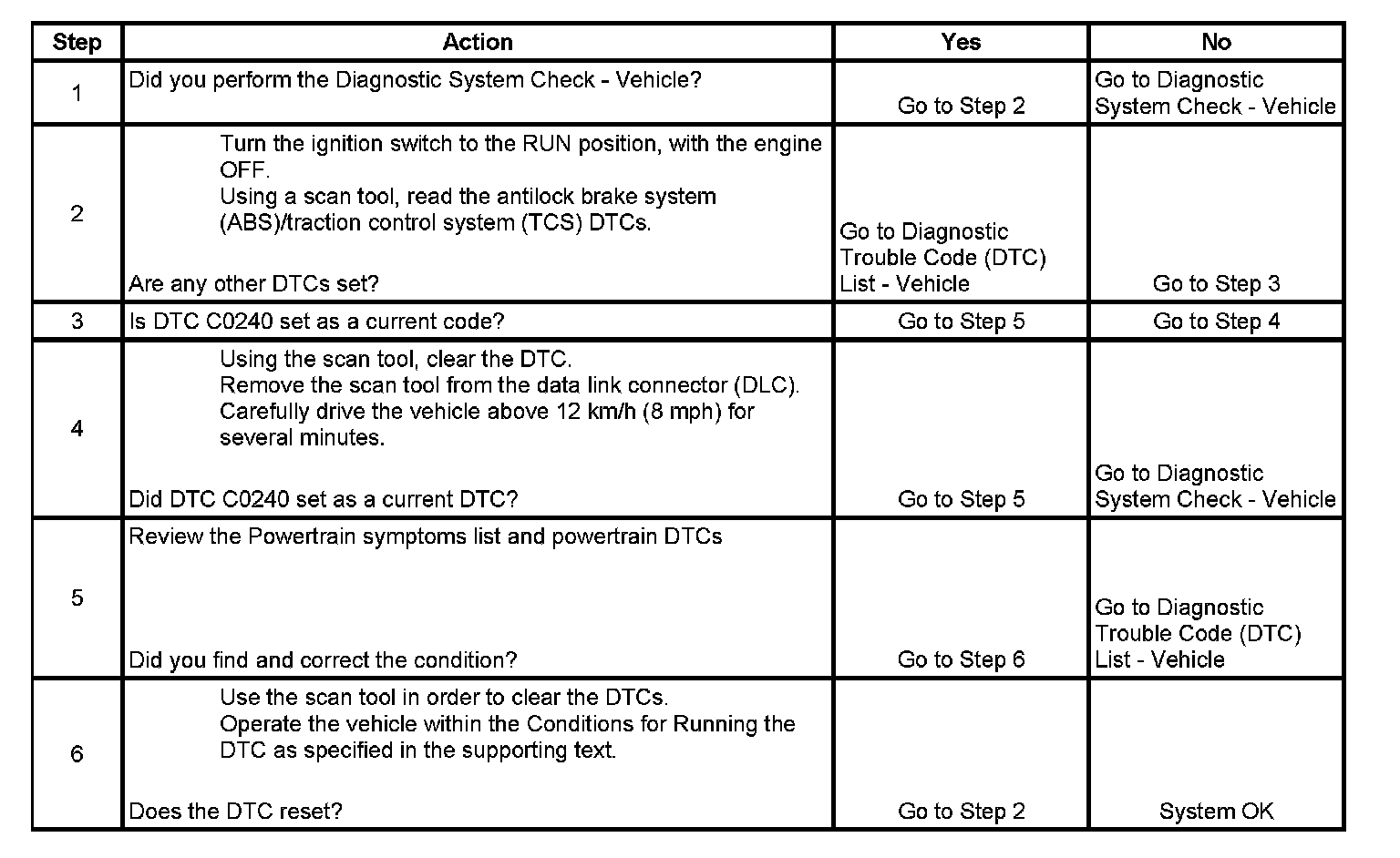4. This step checks if DTC C0240 resets.