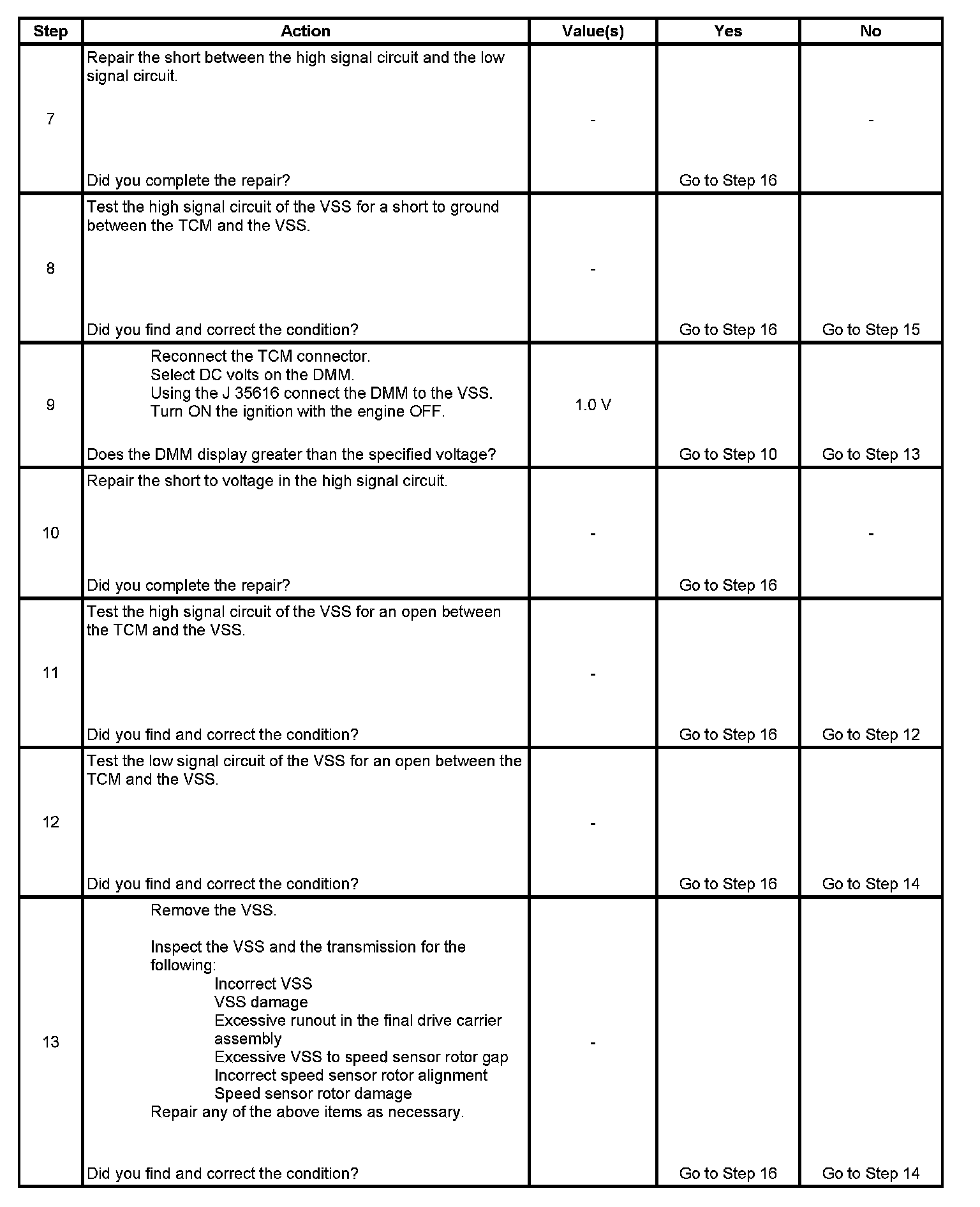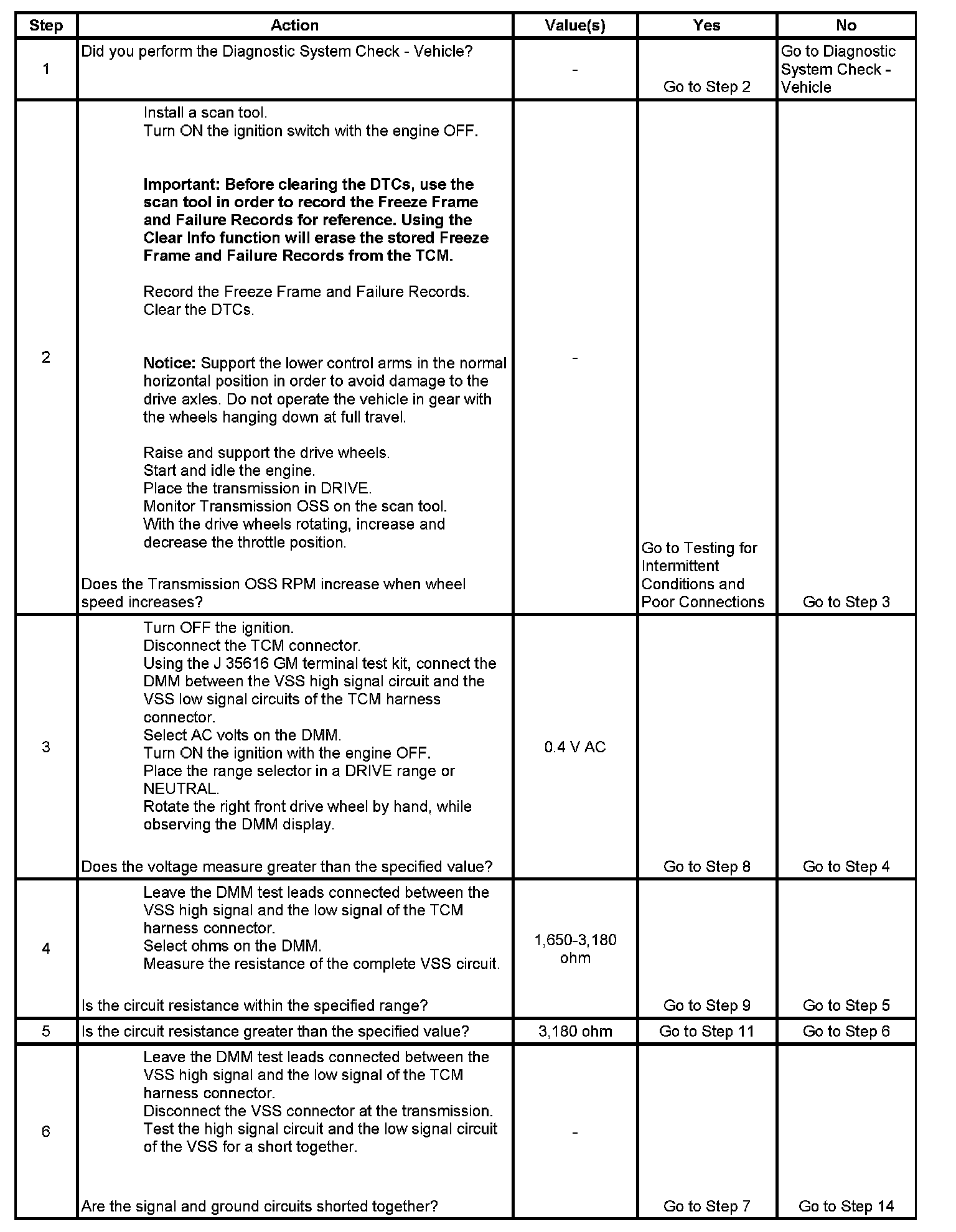 3. This step tests the ability of the VSS to produce an AC voltage. This step also verifies the integrity of the wiring to the TCM.