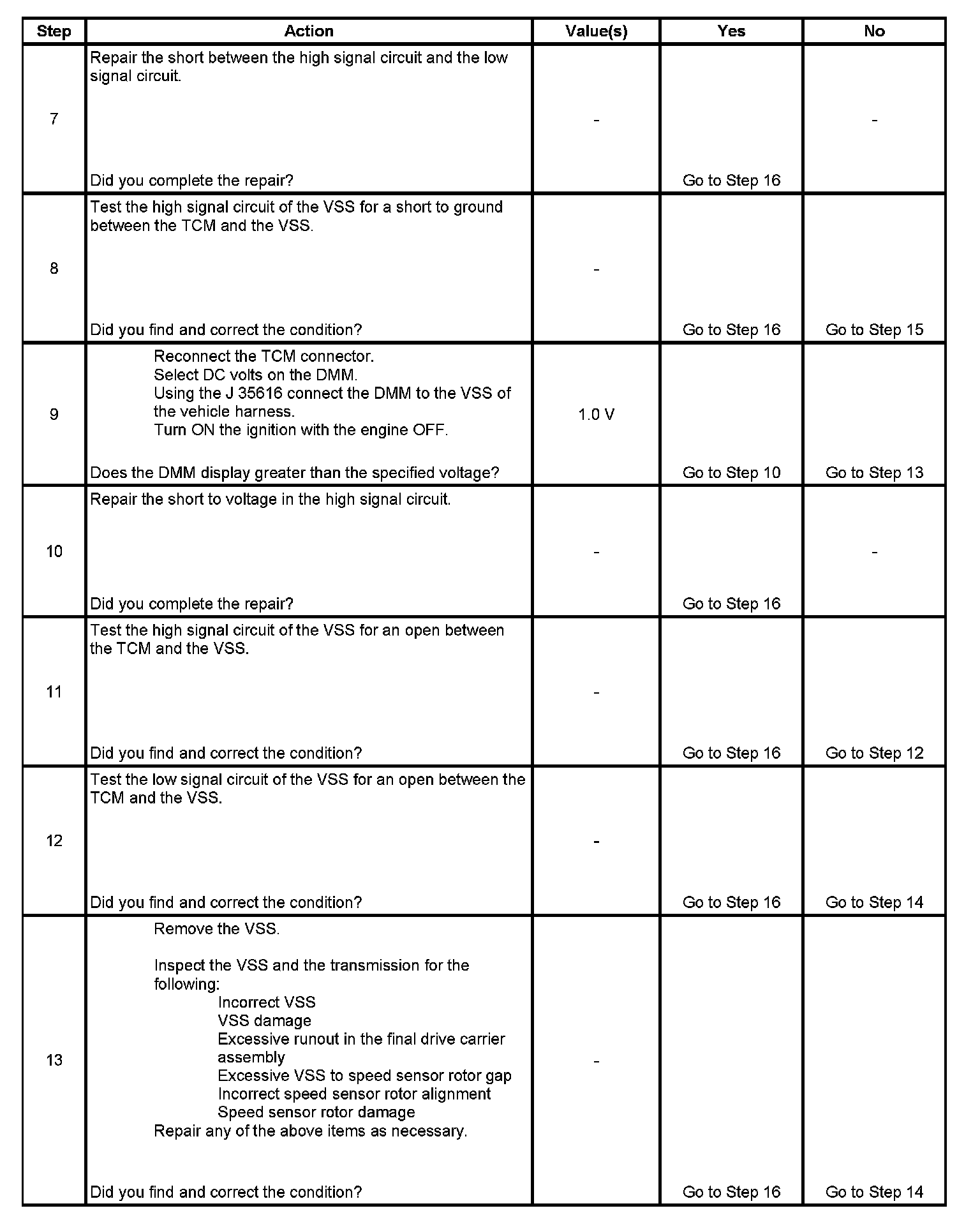 3. This step tests the ability of the VSS to produce an AC voltage. This step also verifies the integrity of the wiring to the TCM.