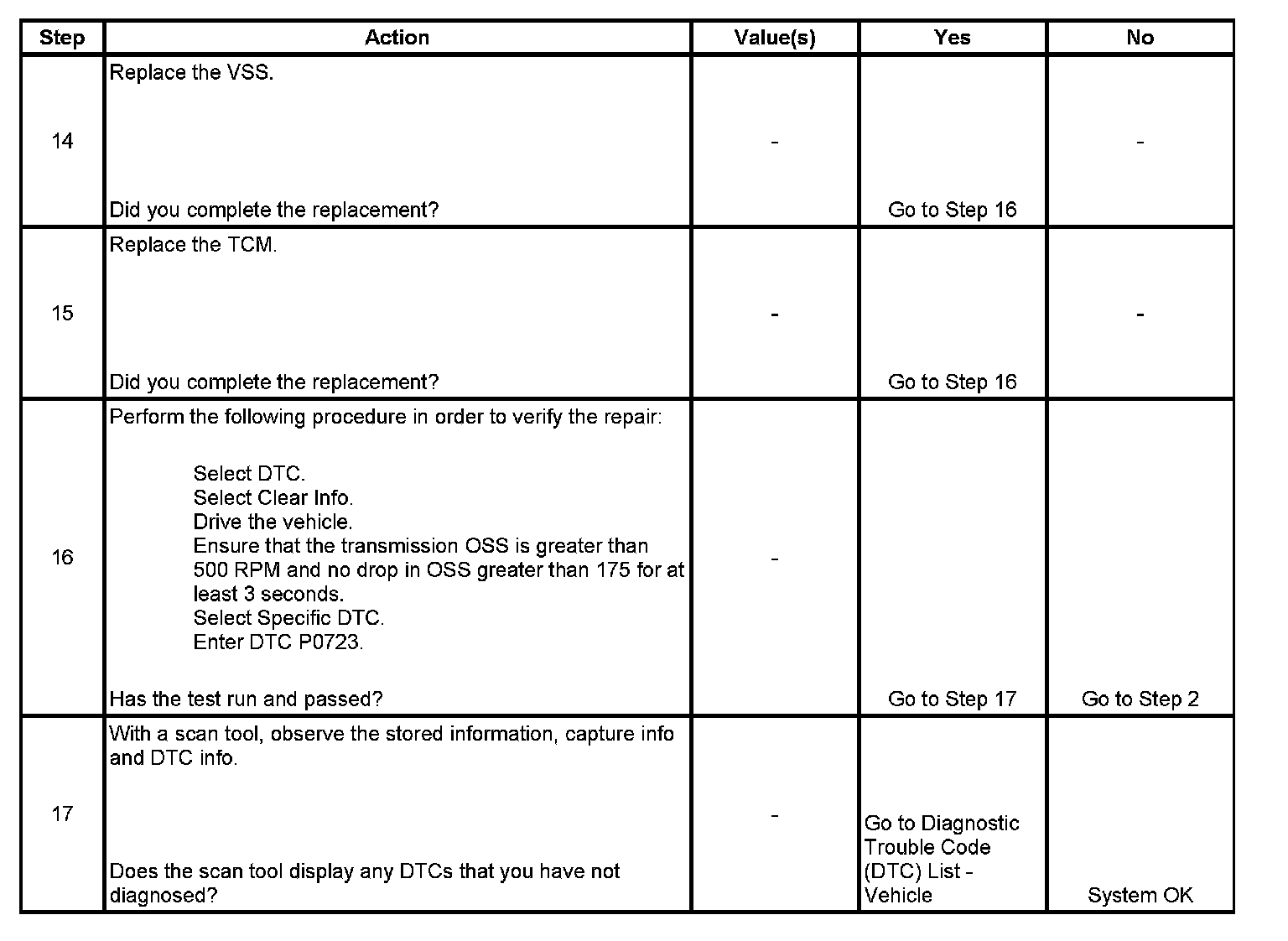 ^ The TCM stores DTC P0723 in TCM history during the second consecutive trip in which the Conditions for Setting the DTC are met.