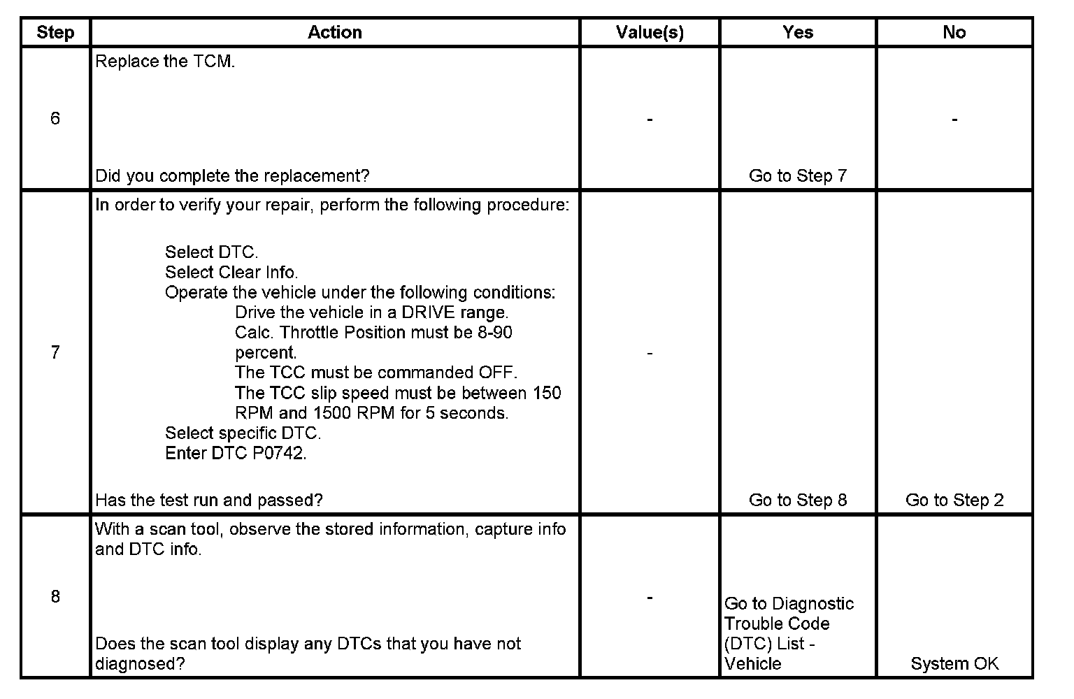 ^ The TCM stores DTC P0742 in TCM history.