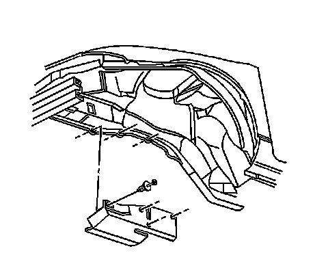4. Remove the engine splash shield from the lower flange of the engine compartment side rail.