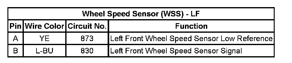 Wheel Speed Sensor (WSS) - LF: