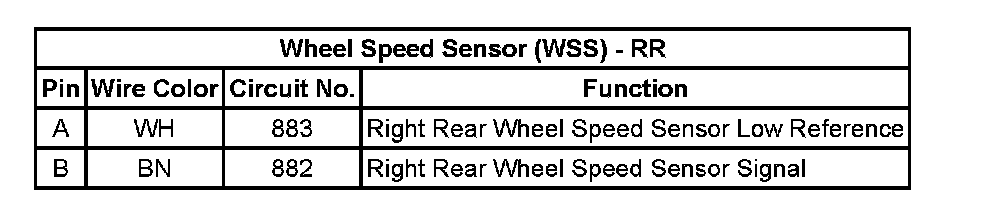 Wheel Speed Sensor (WSS) - RR: