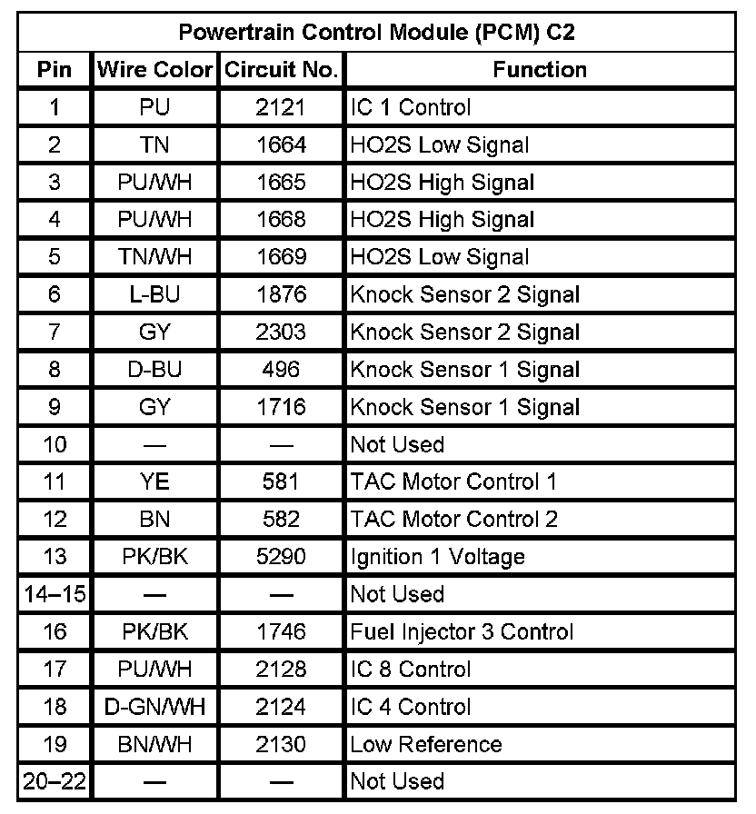 Powertrain Control Module (PCM) C2 (Pin 1 To 22):