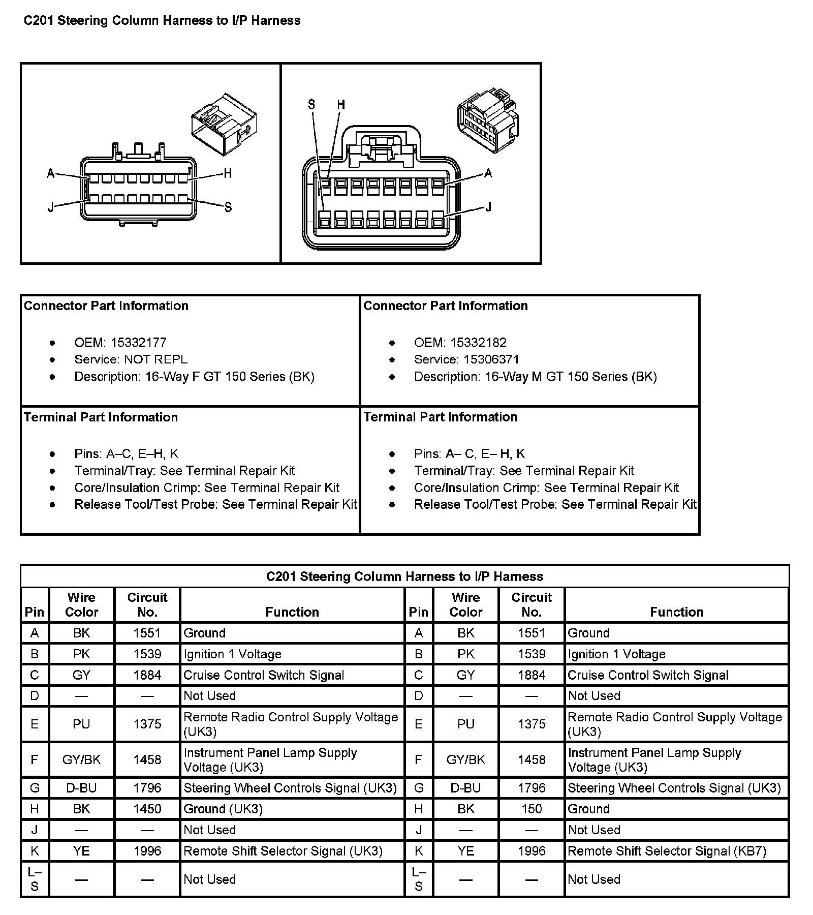 C201 Steering Column Harness To I/P Harness: