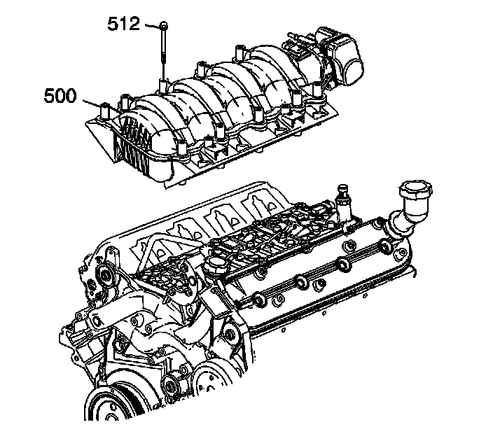 3. Apply a band of threadlock to the threads of the intake manifold bolts (512).