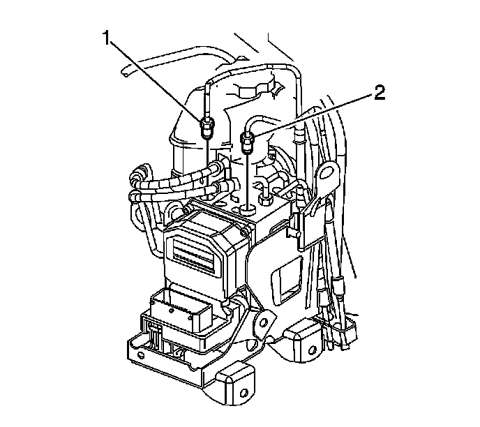 23. Disconnect the brake pipe fittings (1, 2) from the antilock brake (ABS) module.