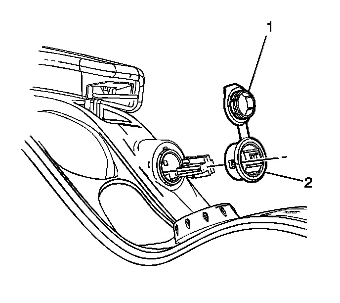 2. Place one side of the "T" portion of the J 42059 into a tab window (2).The J 42059 will not fit straight into the receptacle. Angle the J 42059 slightly for insertion into the receptacle.