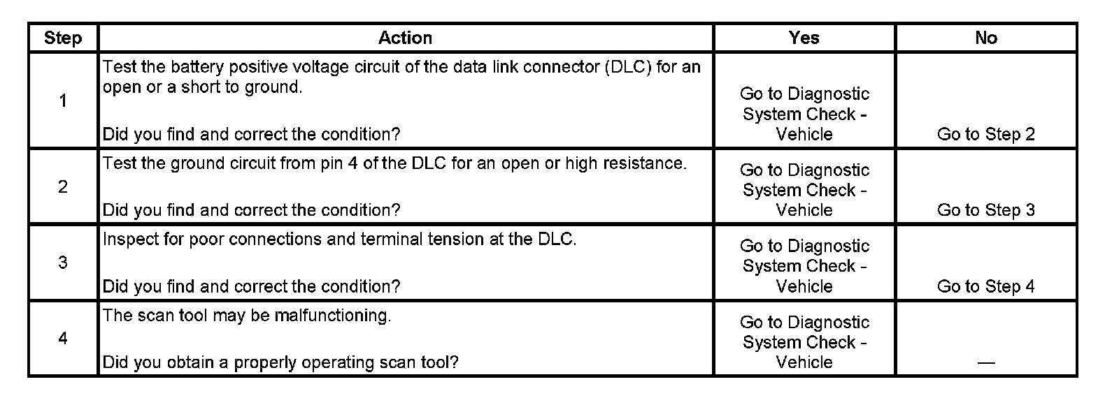4. If the battery positive voltage and ground circuits of the DLC are functioning properly. The malfunction must be due to the scan tool.