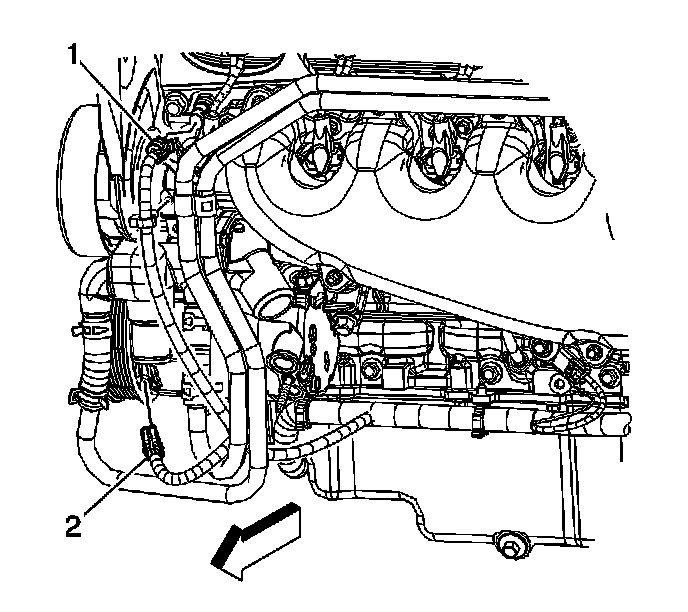 1. Drain the cooling system below the level of the engine coolant temperature (ECT) sensor. Refer to Draining and Filling Cooling System (L26, L32 GE 47716 Fill) Draining and Filling Cooling System (L26, L32 Static Fill) Draining and Filling Cooling System (LS4 GE 47716 Fill) Draining and Filling Cooling System (LS4 Static Fill).