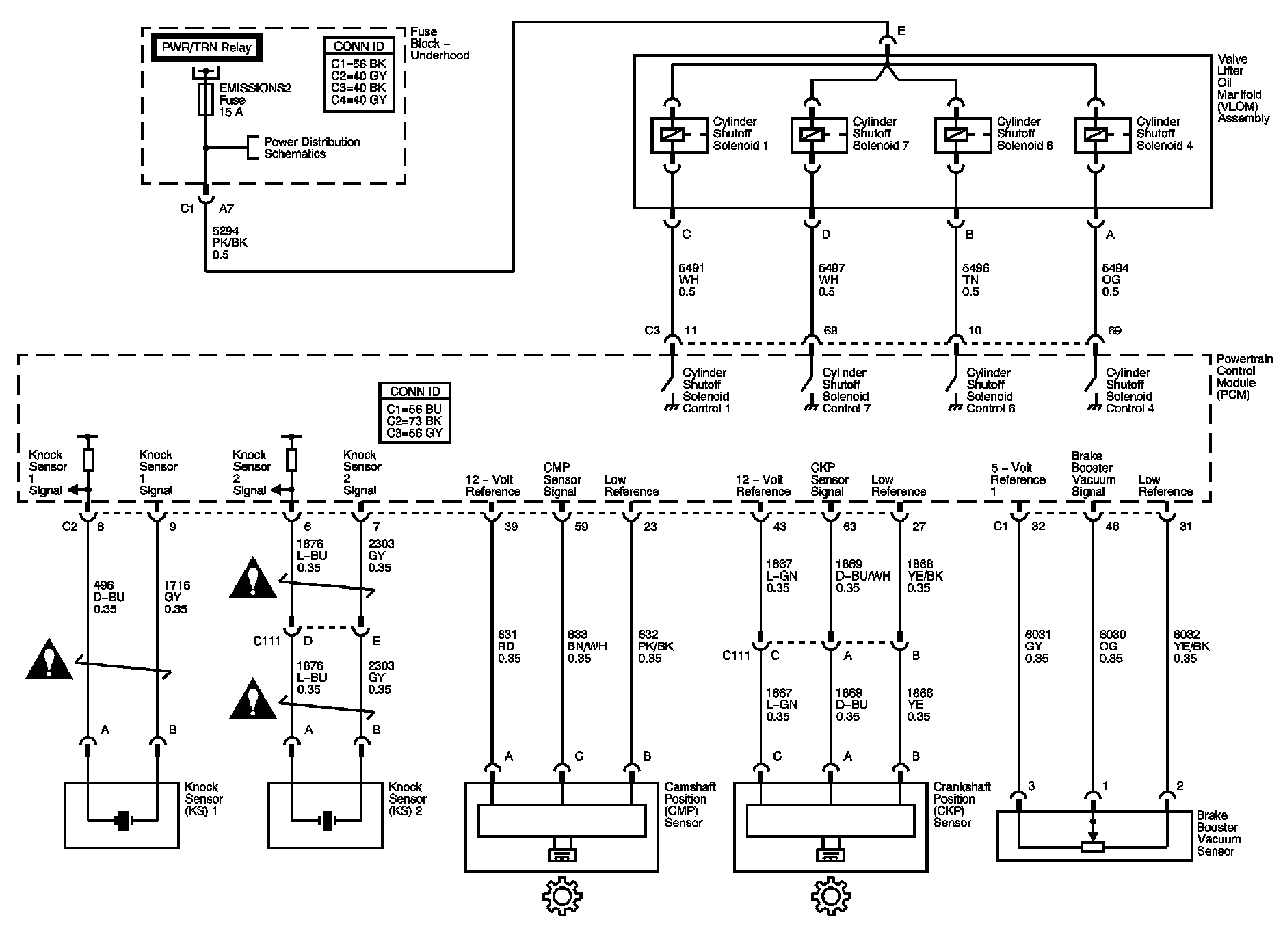 Ignition Controls Knock, CMP, CKP, Brake Booster Vacuum Sensors and Valve Lifter Oil Manifold Assembly
