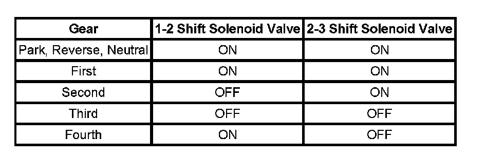 The shift solenoid valves are two identical, normally open, electronic exhaust valves that control upshifts and downshifts in all forward gear ranges. These shift solenoid valves work together in a combination of ON and OFF sequences in order to control the positions of the 1-2 and 2-3 shift valve trains. The PCM monitors numerous inputs in order to determine the appropriate solenoid state combination and the transmission gear for the vehicle operating conditions.