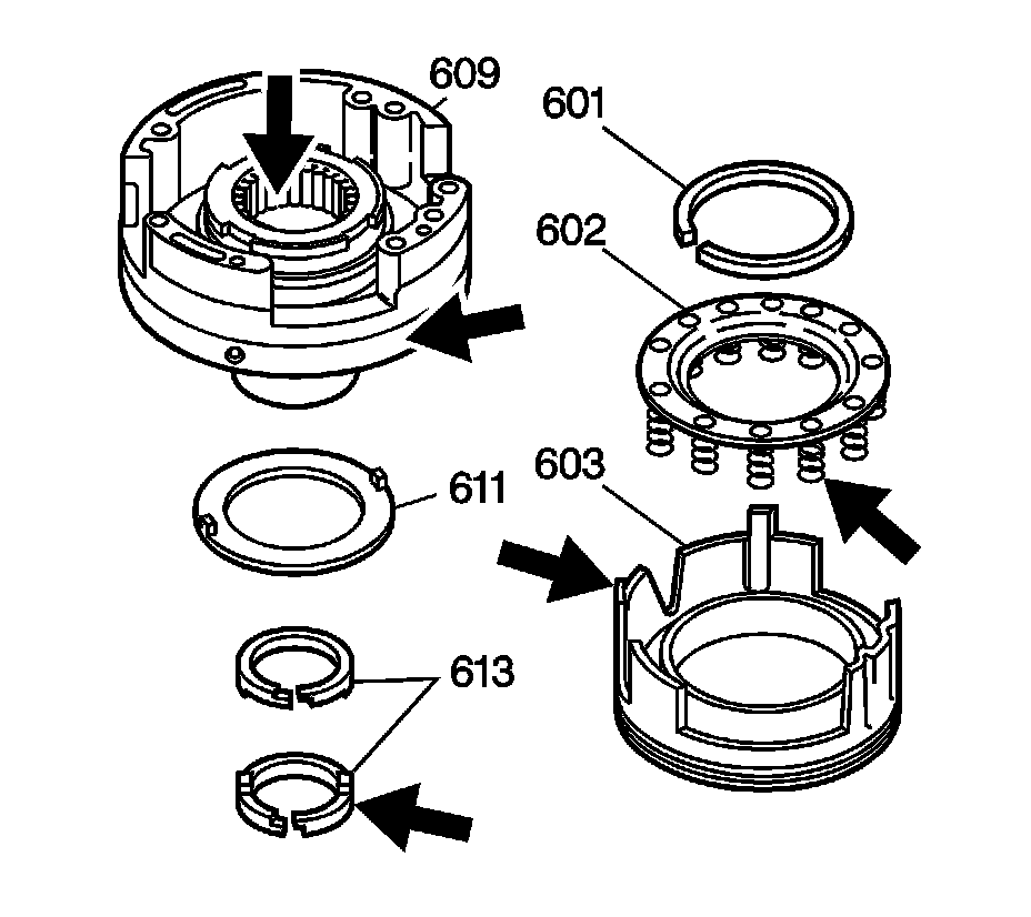 4. Inspect the fourth clutch spring assembly (602) for distorted or missing springs.