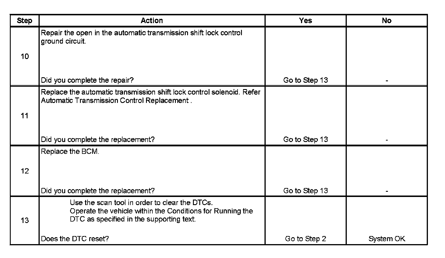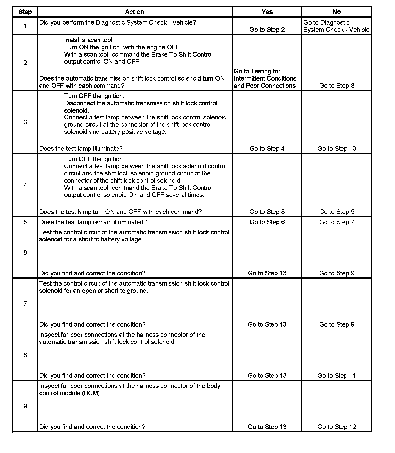 * The BCM will not attempt to enable the voltage supply circuit of the automatic transmission shift lock control solenoid until the next key cycle.