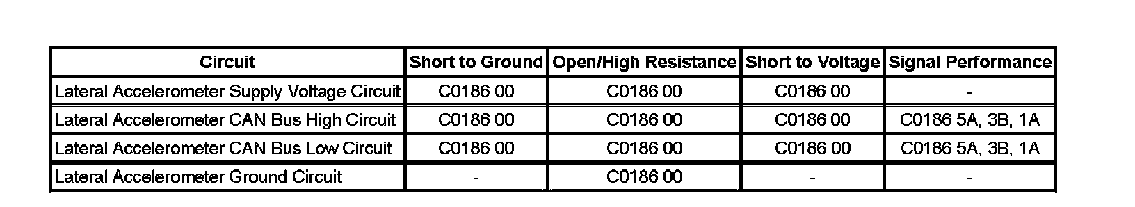 - Lateral Accelerometer Circuit Electrical Failure