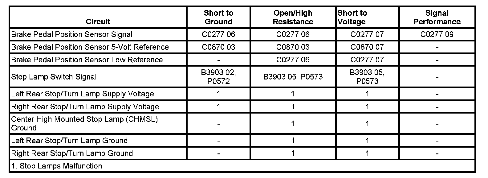 - Brake Pedal Position Sensor Circuit Short to Ground or Open