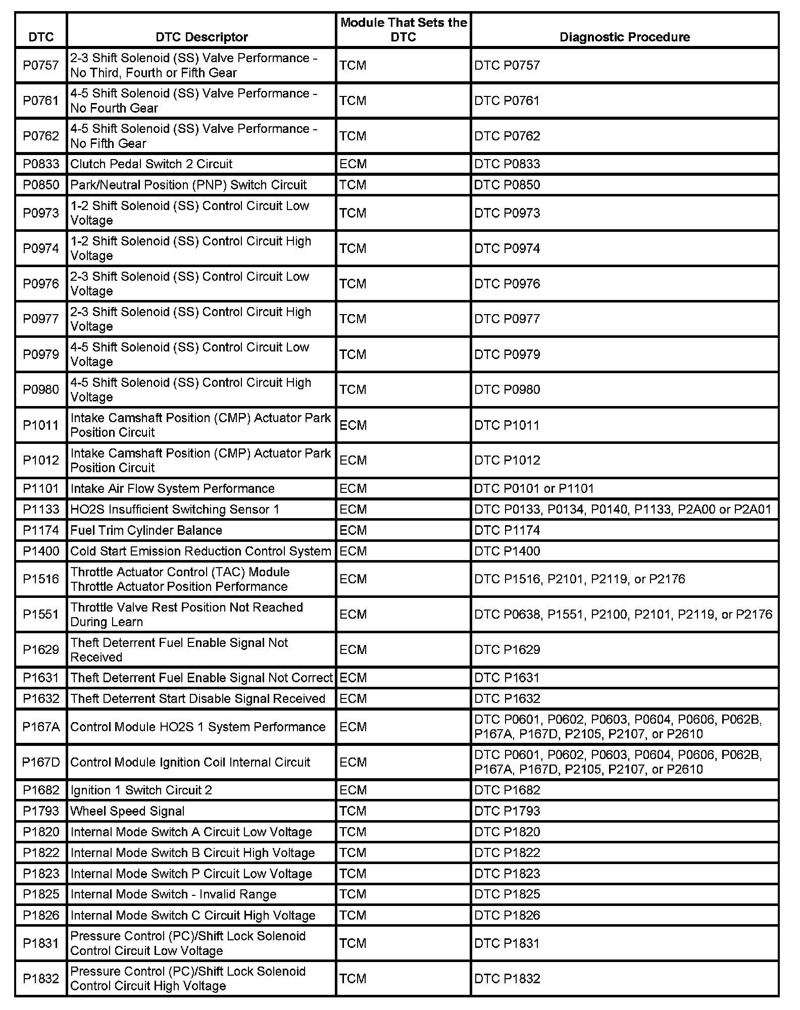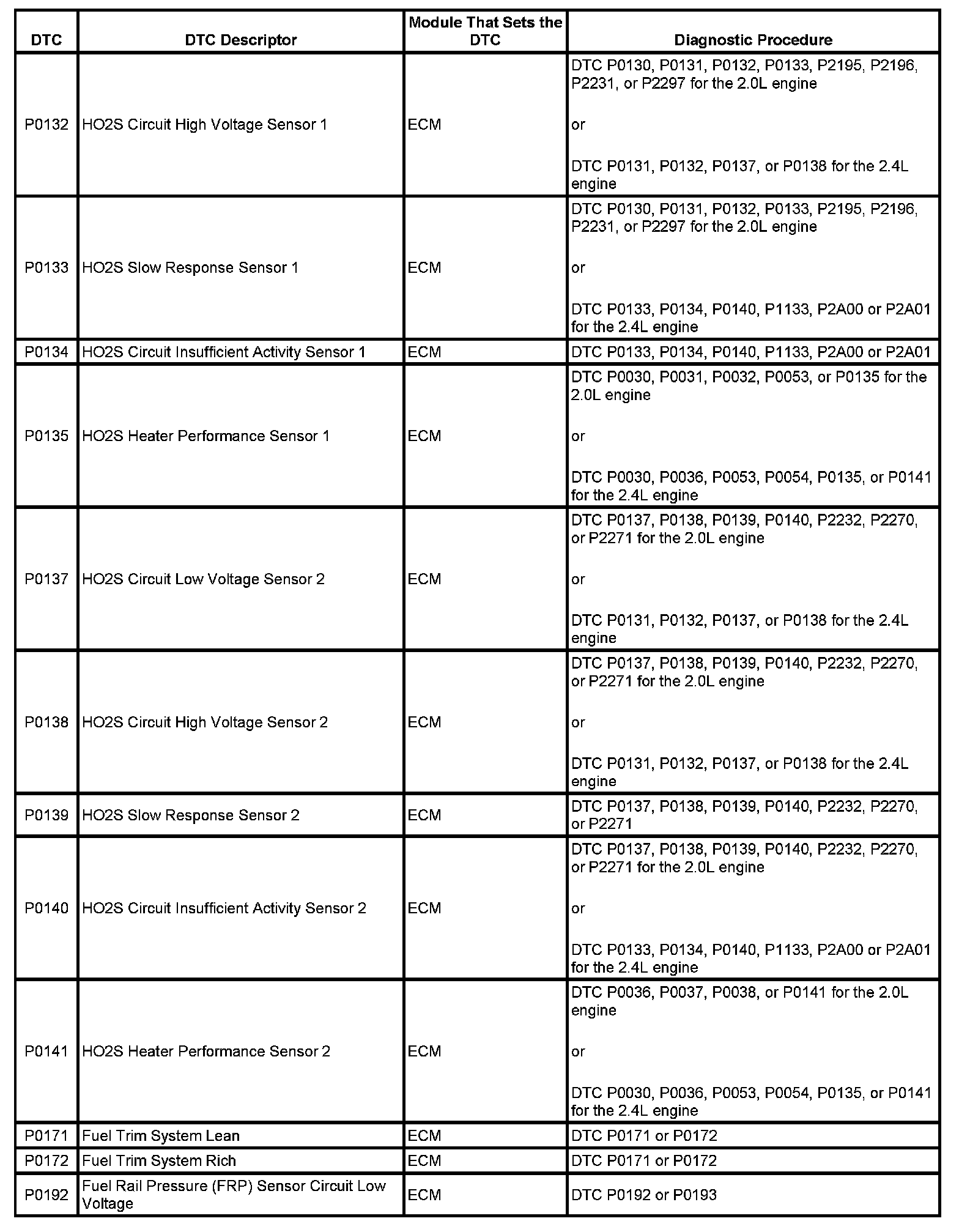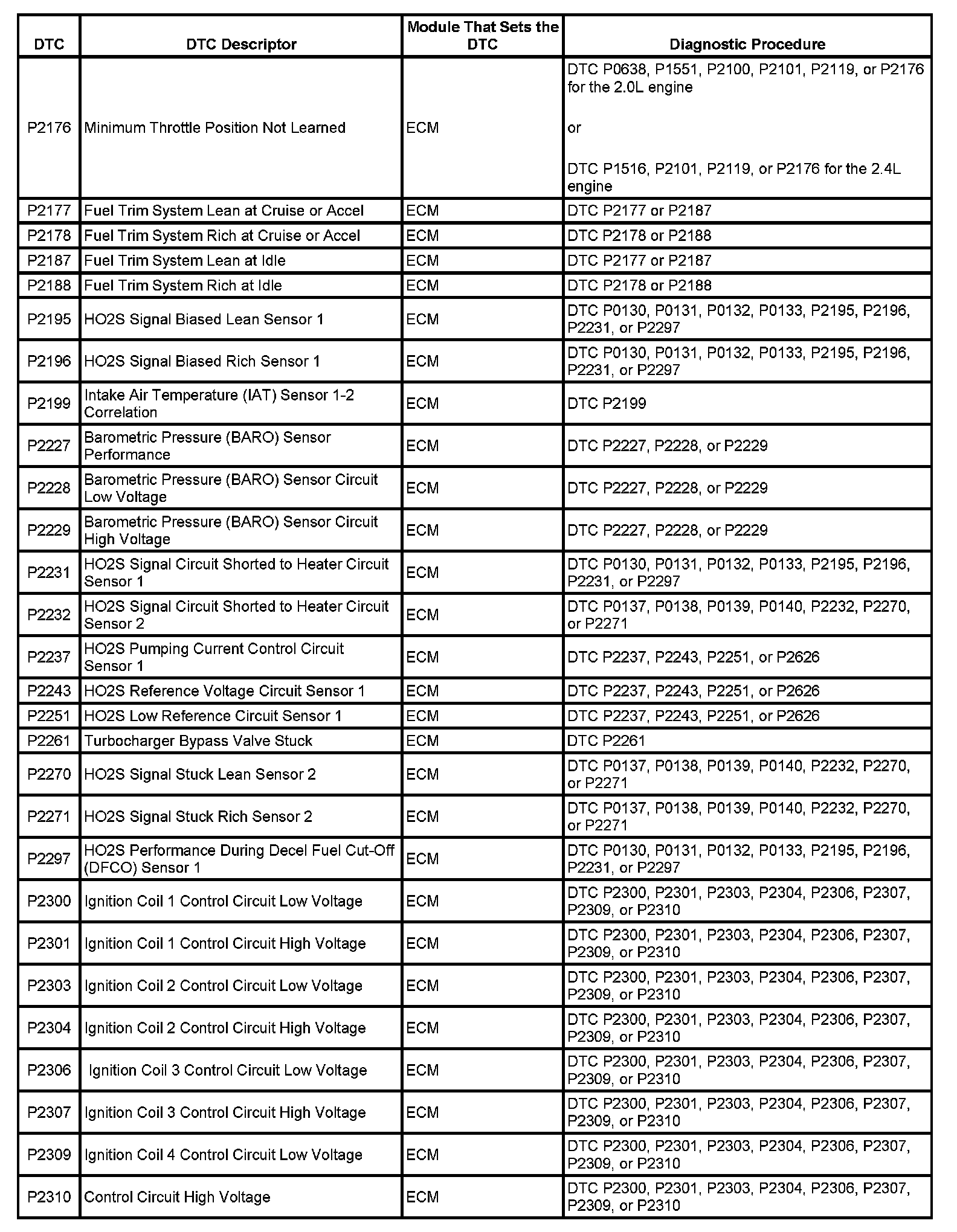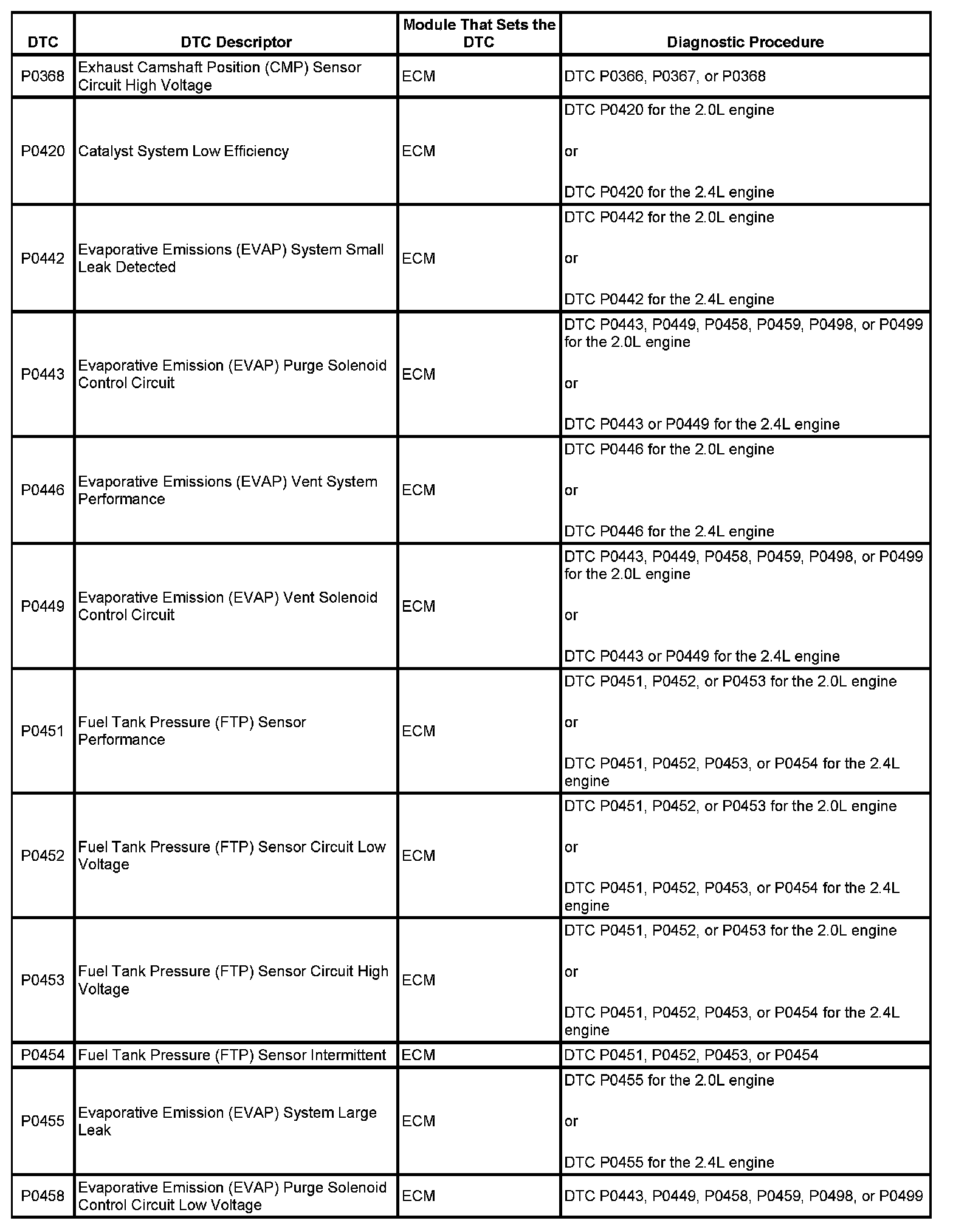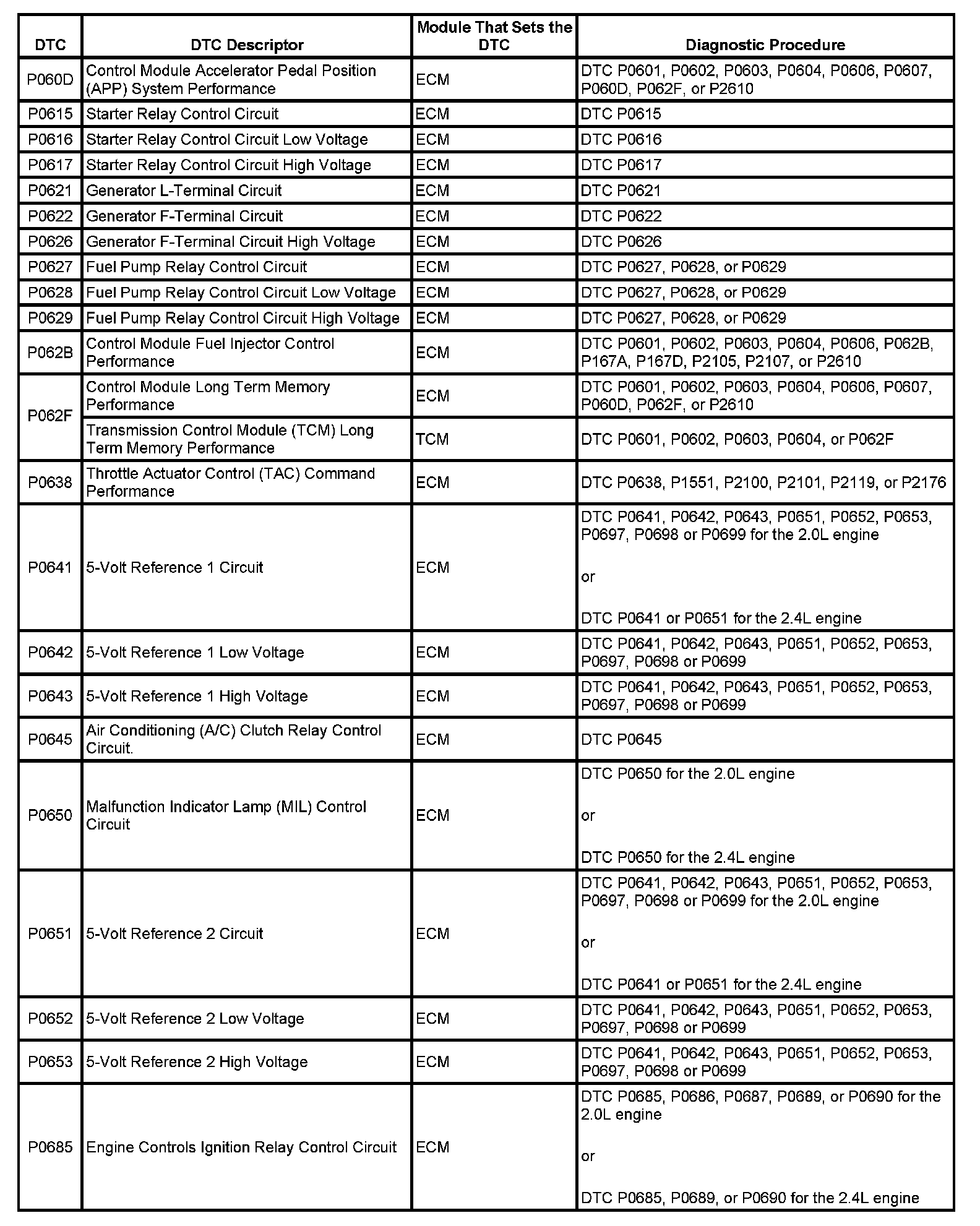 Diagnostic Trouble Code (DTC) List - VehicleThis master DTC list includes all applicable DTCs in alphanumeric order with descriptors.
