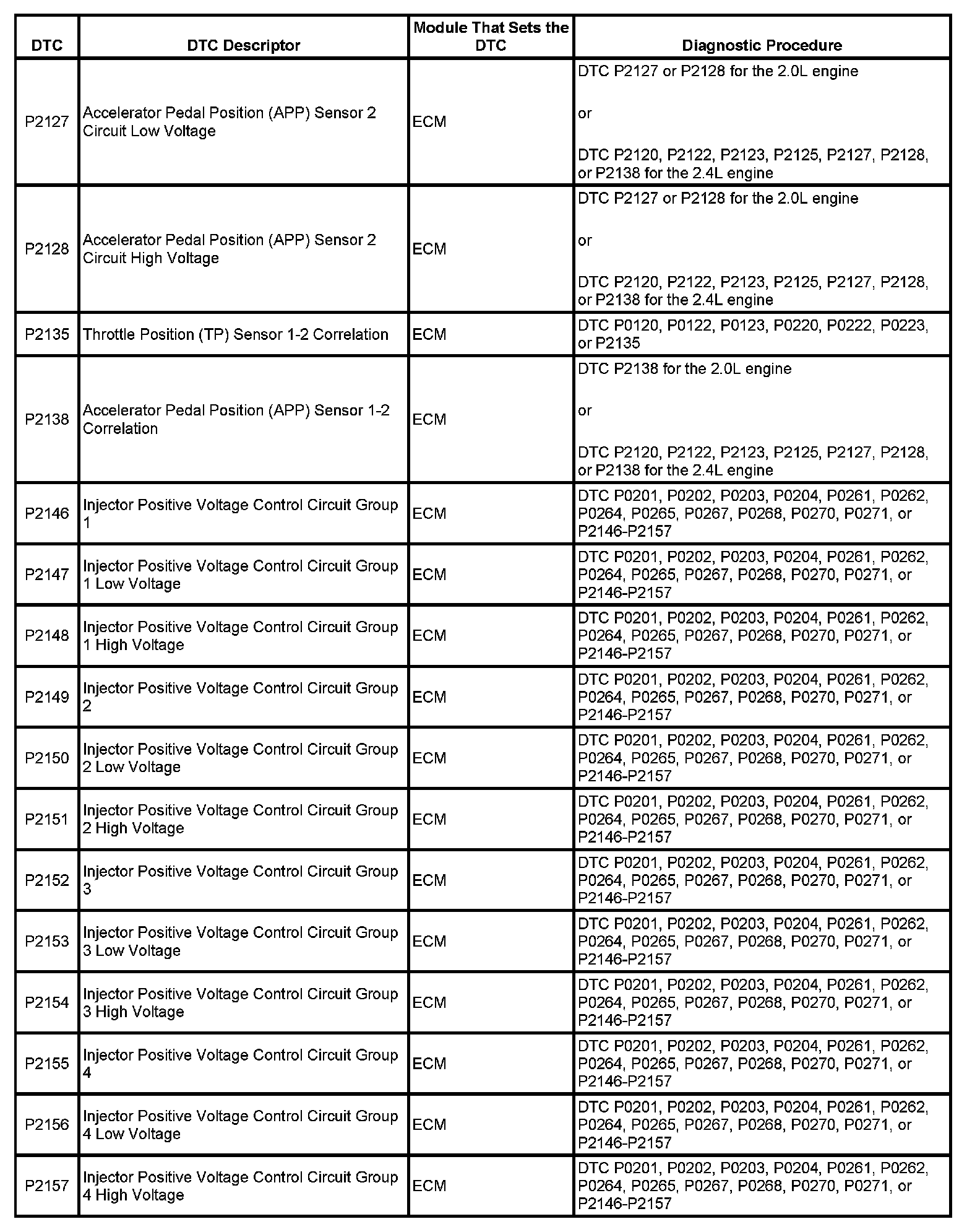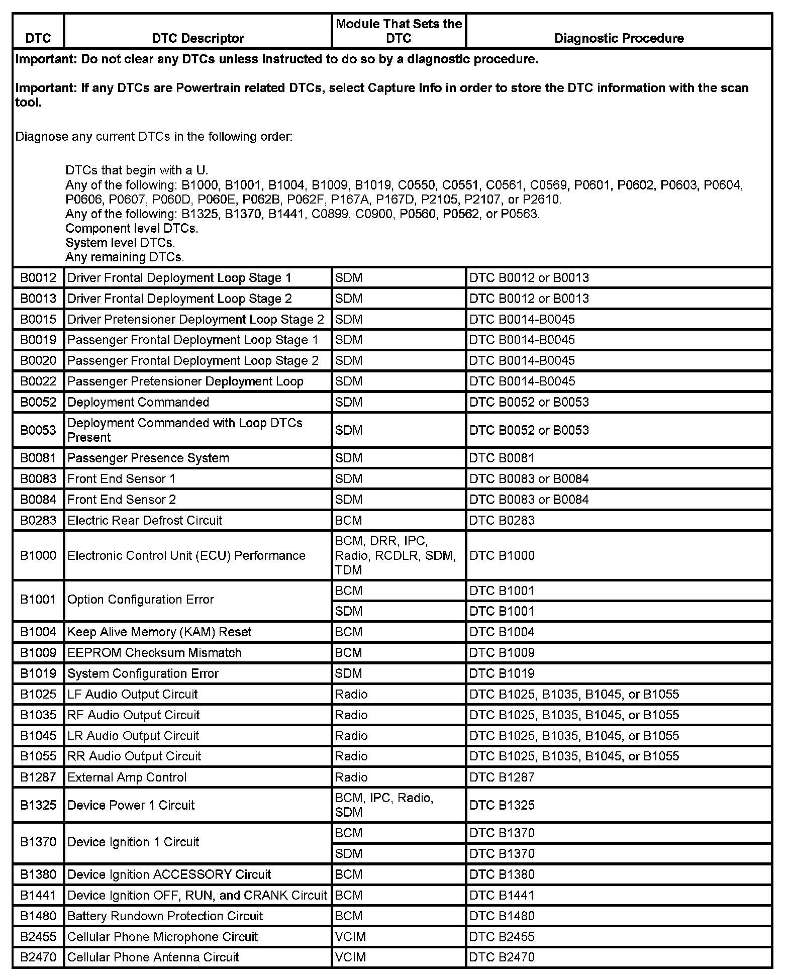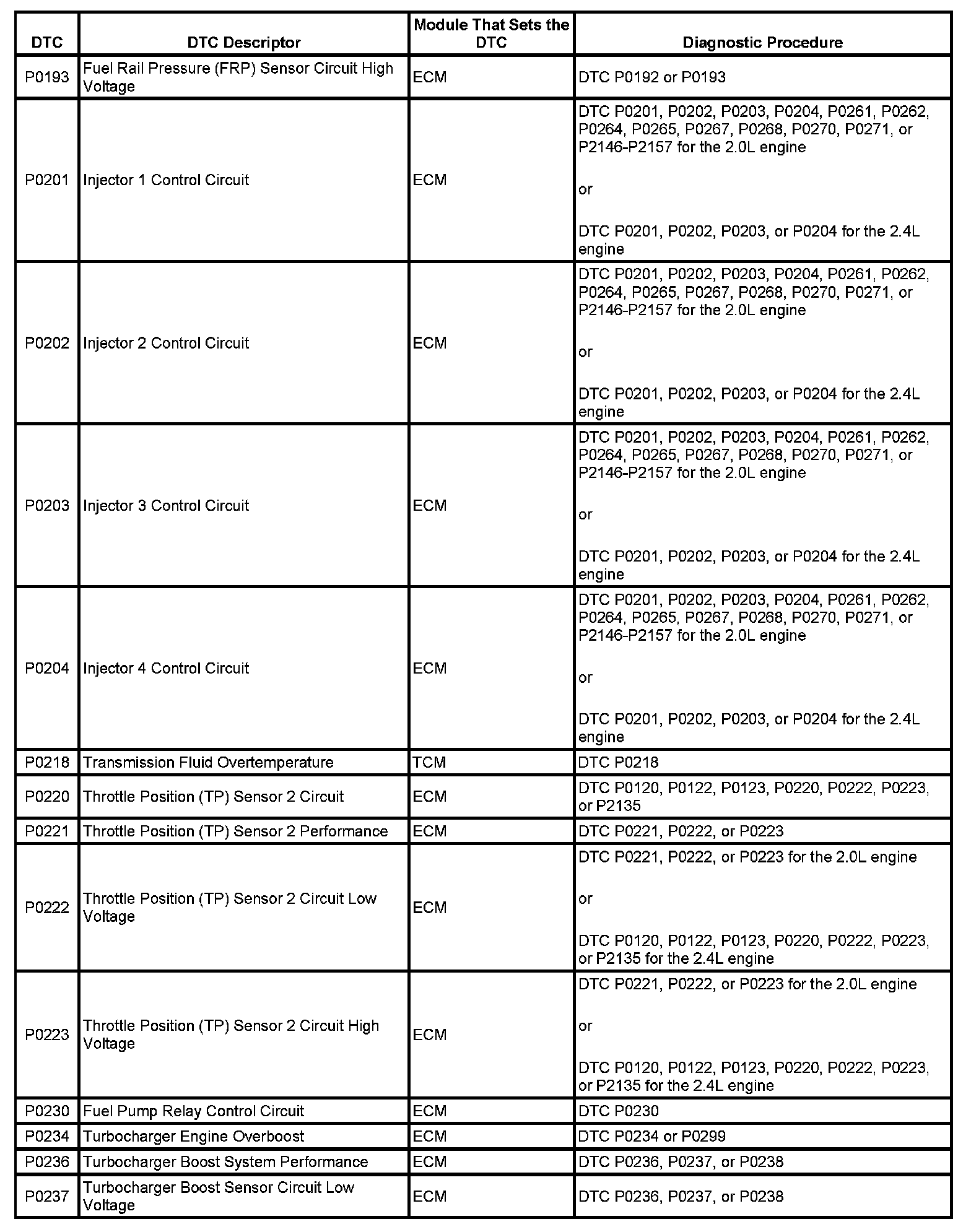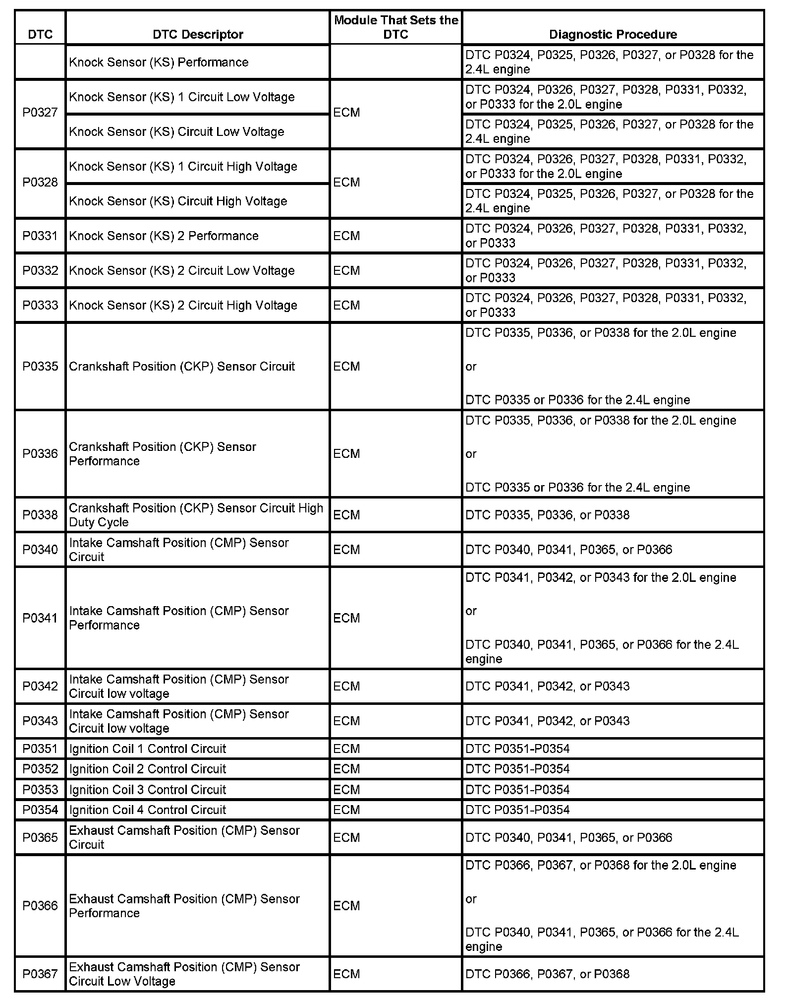Diagnostic Trouble Code (DTC) List - VehicleThis master DTC list includes all applicable DTCs in alphanumeric order with descriptors.