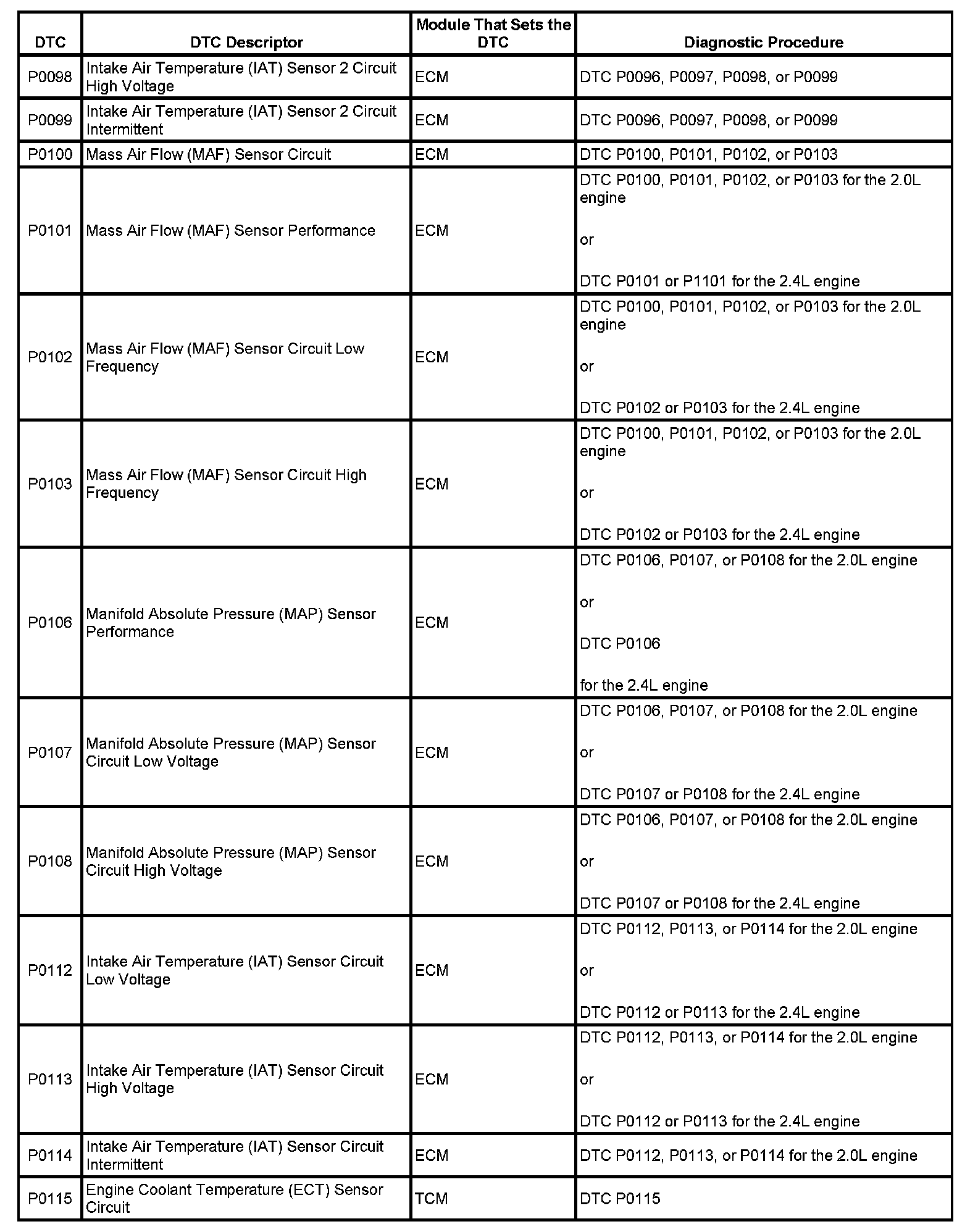 P0098-P0115: