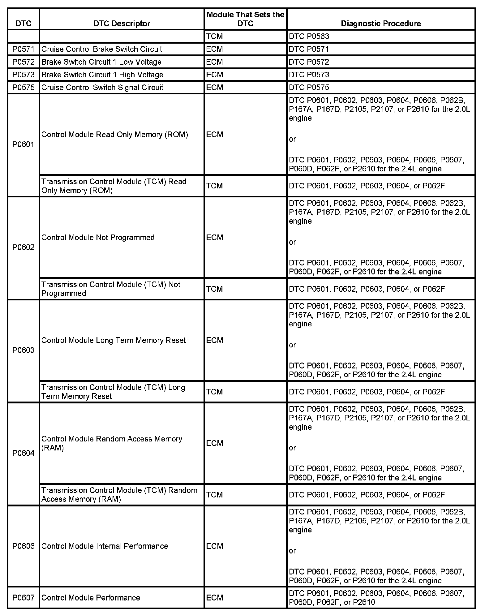 P0571-P0607: