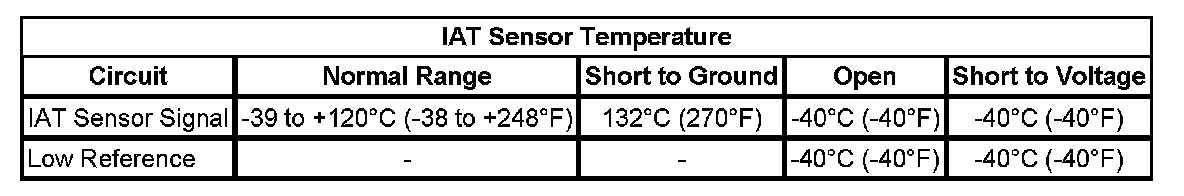 * An IAT low reference circuit that is open can cause the IAT Sensor parameter response to be sluggish. This condition may not necessarily set a DTC.