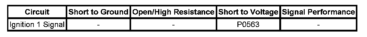 2. Start the engine, record the voltage at the battery terminals. Observe the Ignition 1 signal parameter in the ECM data list. Voltages should not differ by more than 1 volt.