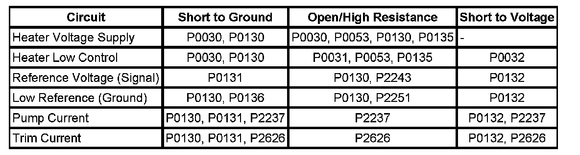 DTC P0130, P0131, P0132, P0133, P2195, P2196, P2231, or P2297
