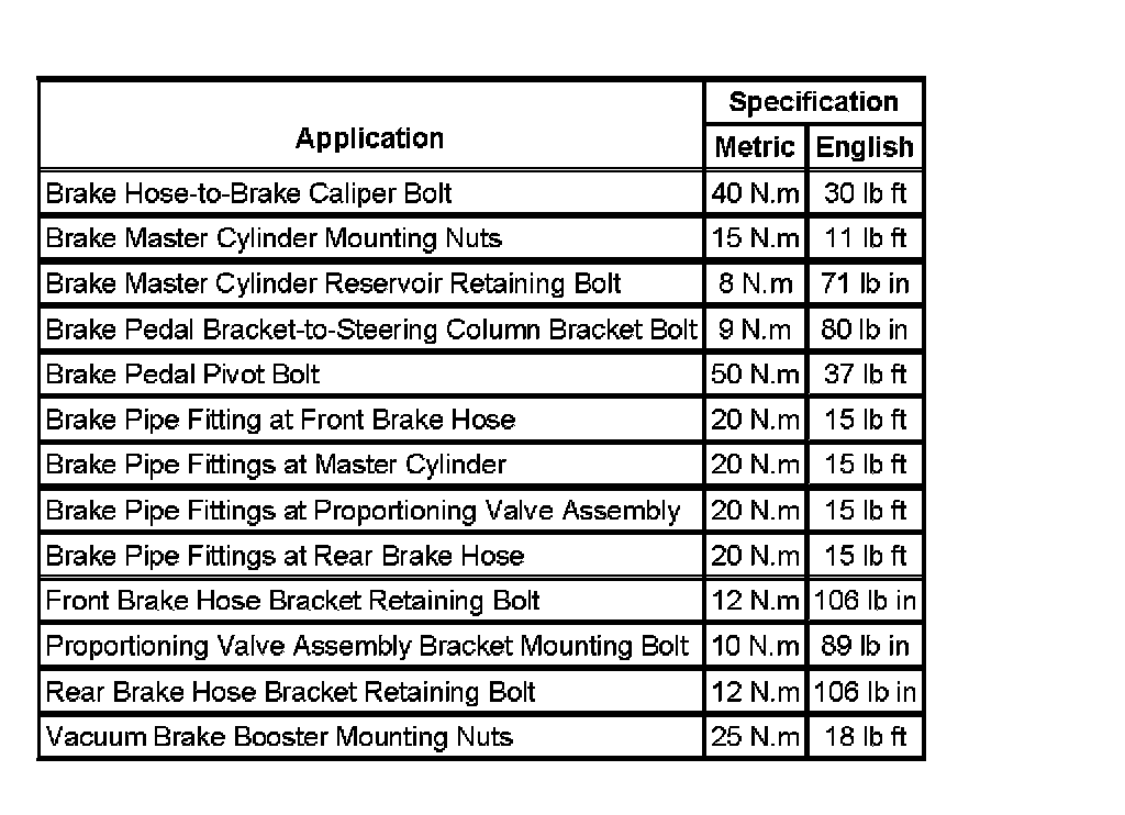 Fastener Tightening Specifications: