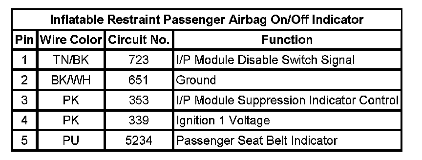 Inflatable Restraint Passenger Airbag On/Off Indicator